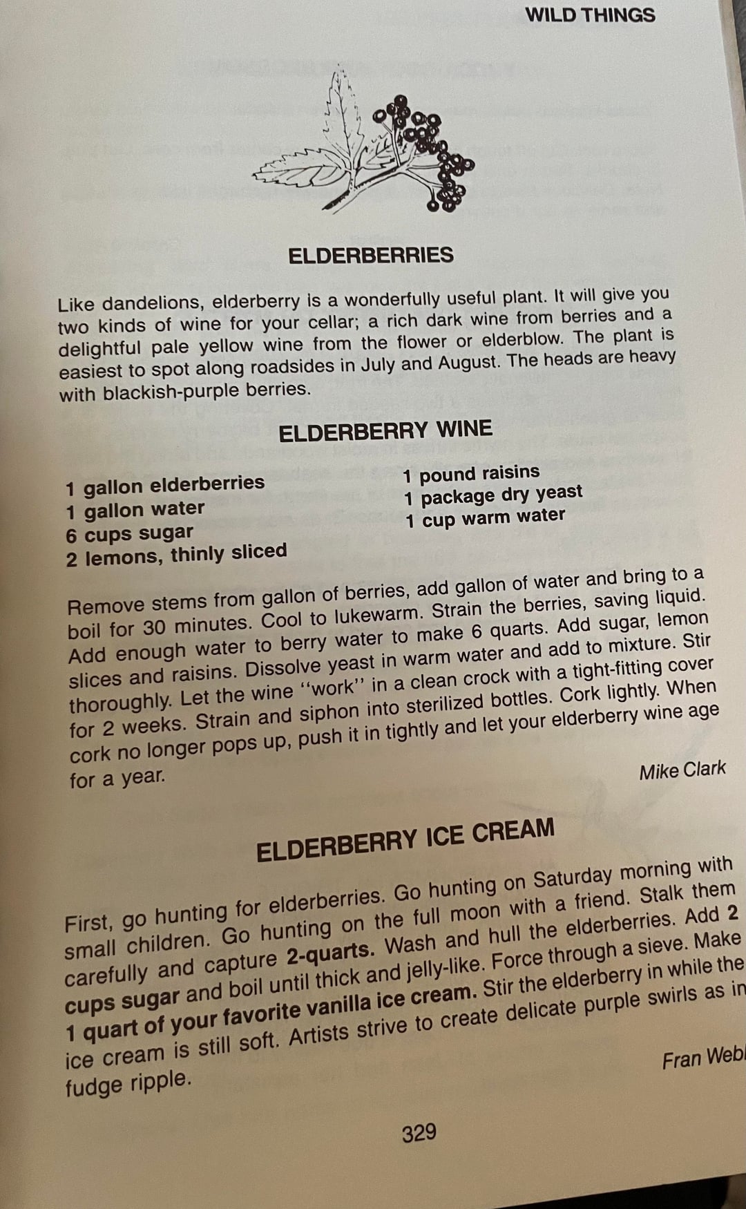Elderberry wine looks interesting. I wouldn’t know an elderberry from a chokecherry or a damn poison berry.
