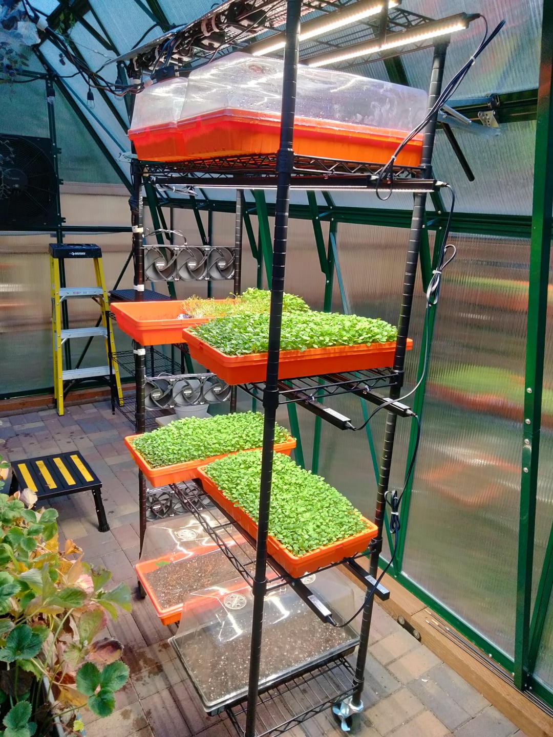 That looks like an excellent setup! I’m particularly impressed with the ventilation. I have used small computer fans on seed starting racks, but only two per shelf. I’ve never grown microgreens like this. Well done!