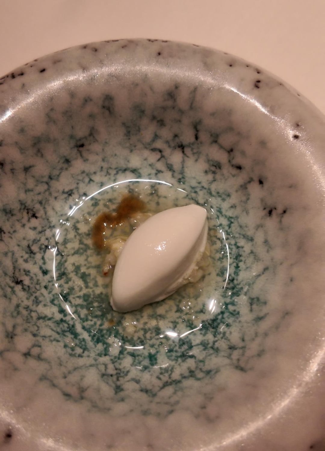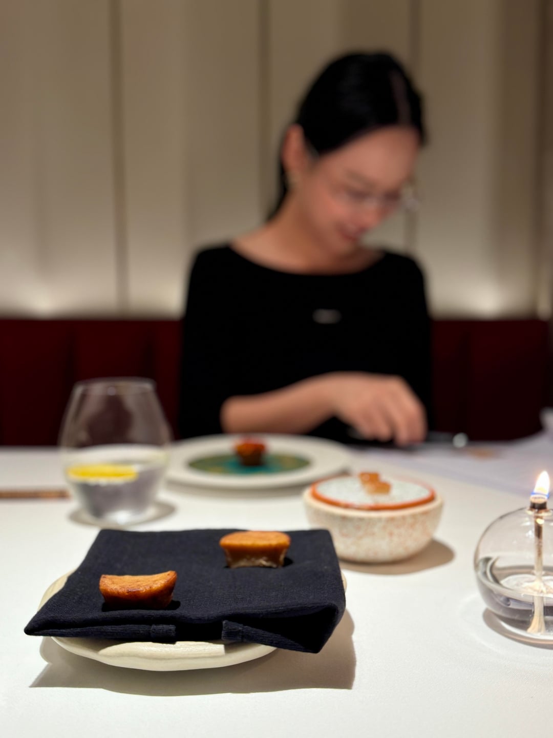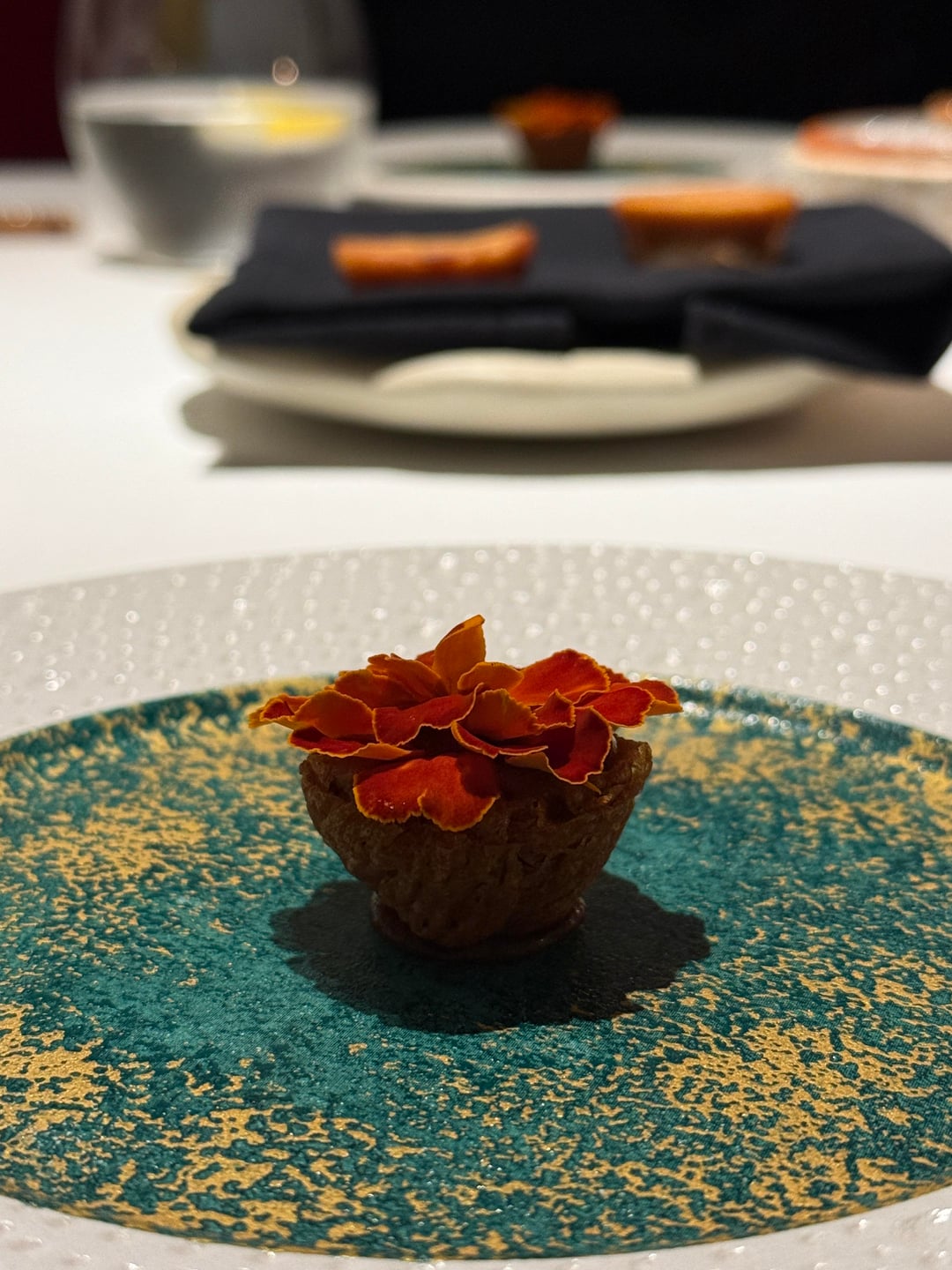 Next came the Andaman Tiger Prawn dish, which leaned into bright, sour notes — super refreshing and aromatic. It reminded me of goong chae nam pla (raw shrimp in fish sauce) in a refined, elegant way.
