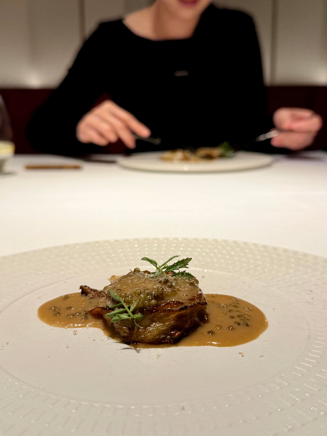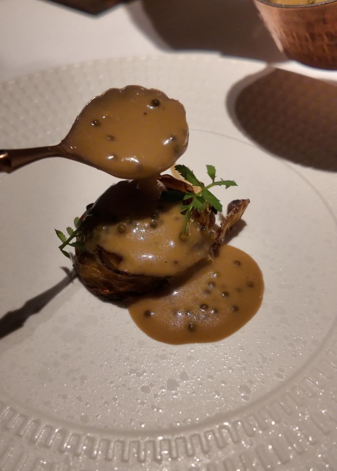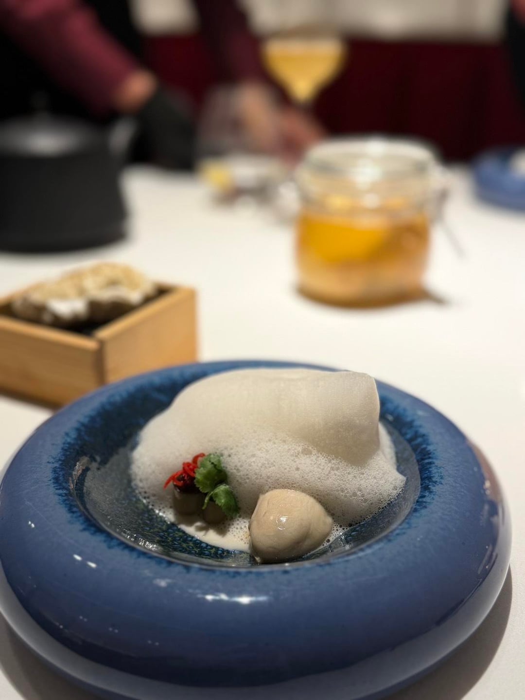 One of my favorite dishes was called “Earth and Sea” — a creative combination of roasted cabbage (representing “Earth”) and caviar (“Sea”), served with a deeply intense sauce. Rich, bold, and beautifully presented.