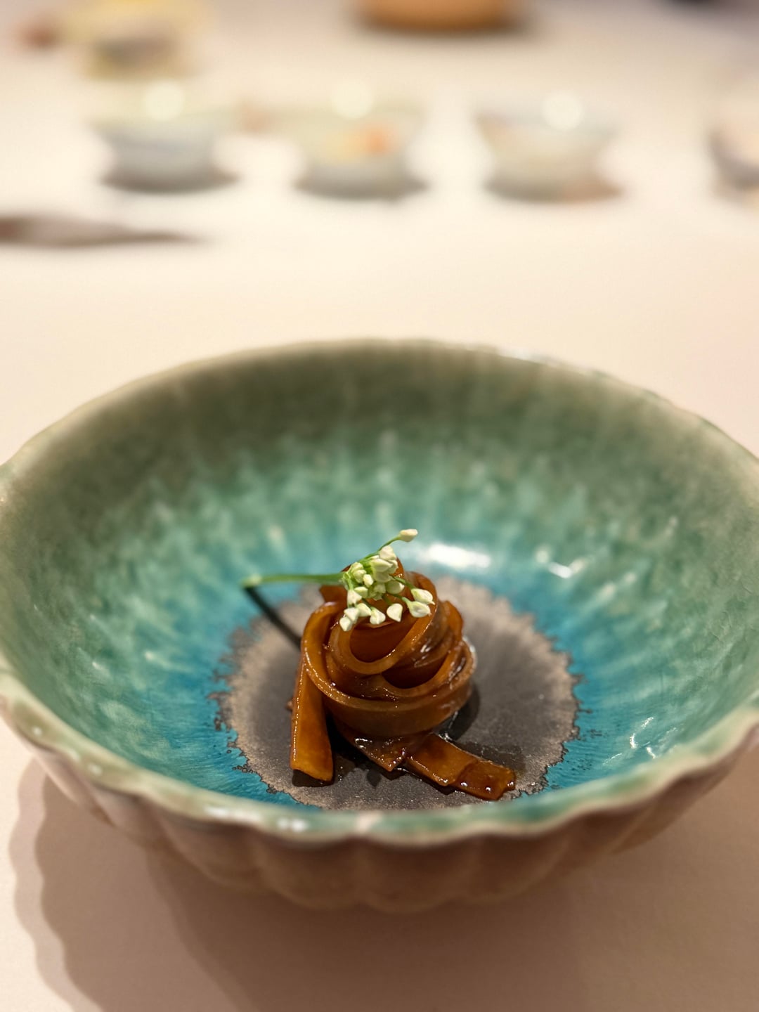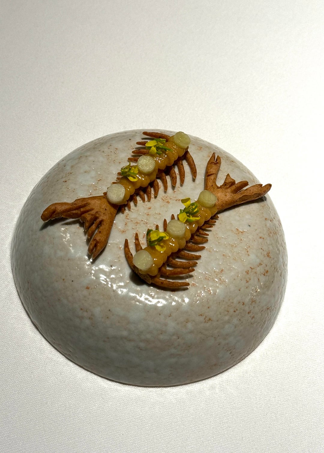 - A grilled squid dish made with SCOBY (from kombucha), which added a unique texture and tang, and