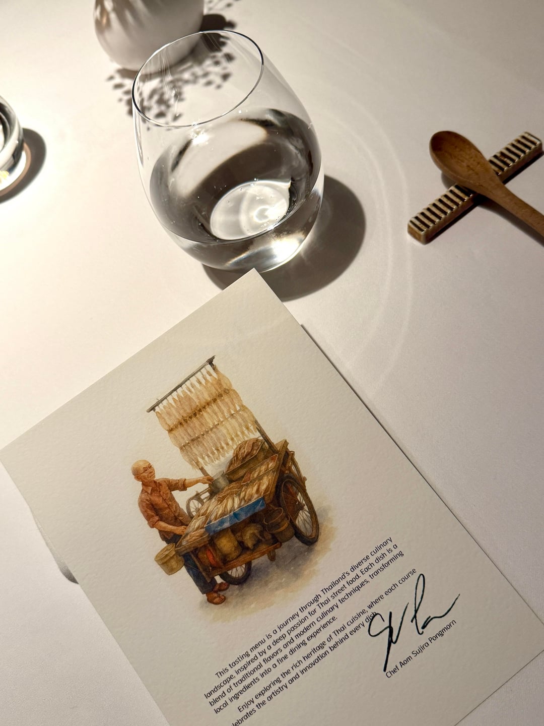 The meal ended with a stunning petit four set — five small desserts served in a beautifully designed wooden box with a miniature tree. The “khanom thuay” (Thai coconut pudding) was so good, I honestly wish they sold it by the box!