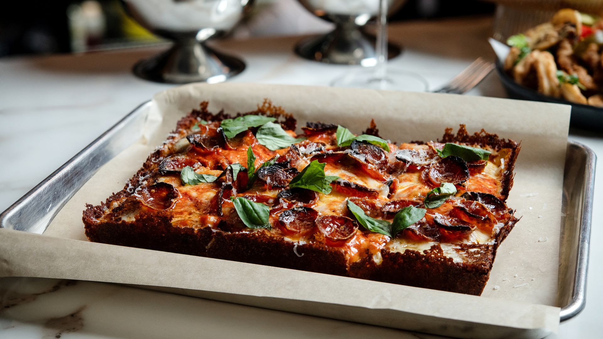 Casa Louie’s Waterline Square location is expected to open in Spring 2026 in a 3,300-square-foot space designed by Sarah Carpenter. The restaurant will serve lunch and dinner, offering wood-fired sourdough pizzas, handmade pastas, vegetable-forward dishes, and a full slate of gluten-free options — from pizza crusts to fresh pasta.