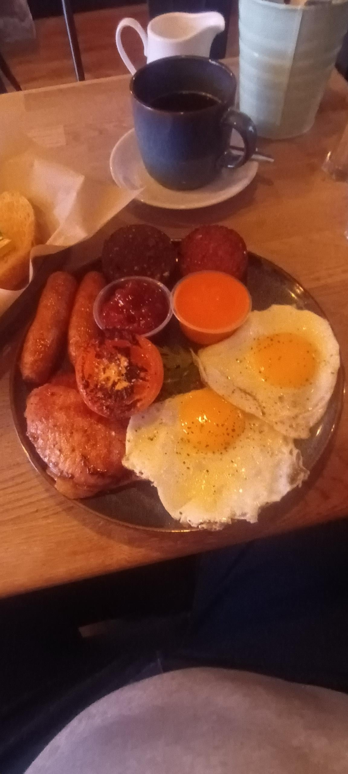 Controversially instead of Ketchup or YR or HP sauce.. I got a hot sauce to go with.. no beans or mushies is a travesty..by Yama_retired2024 Dining and Cooking