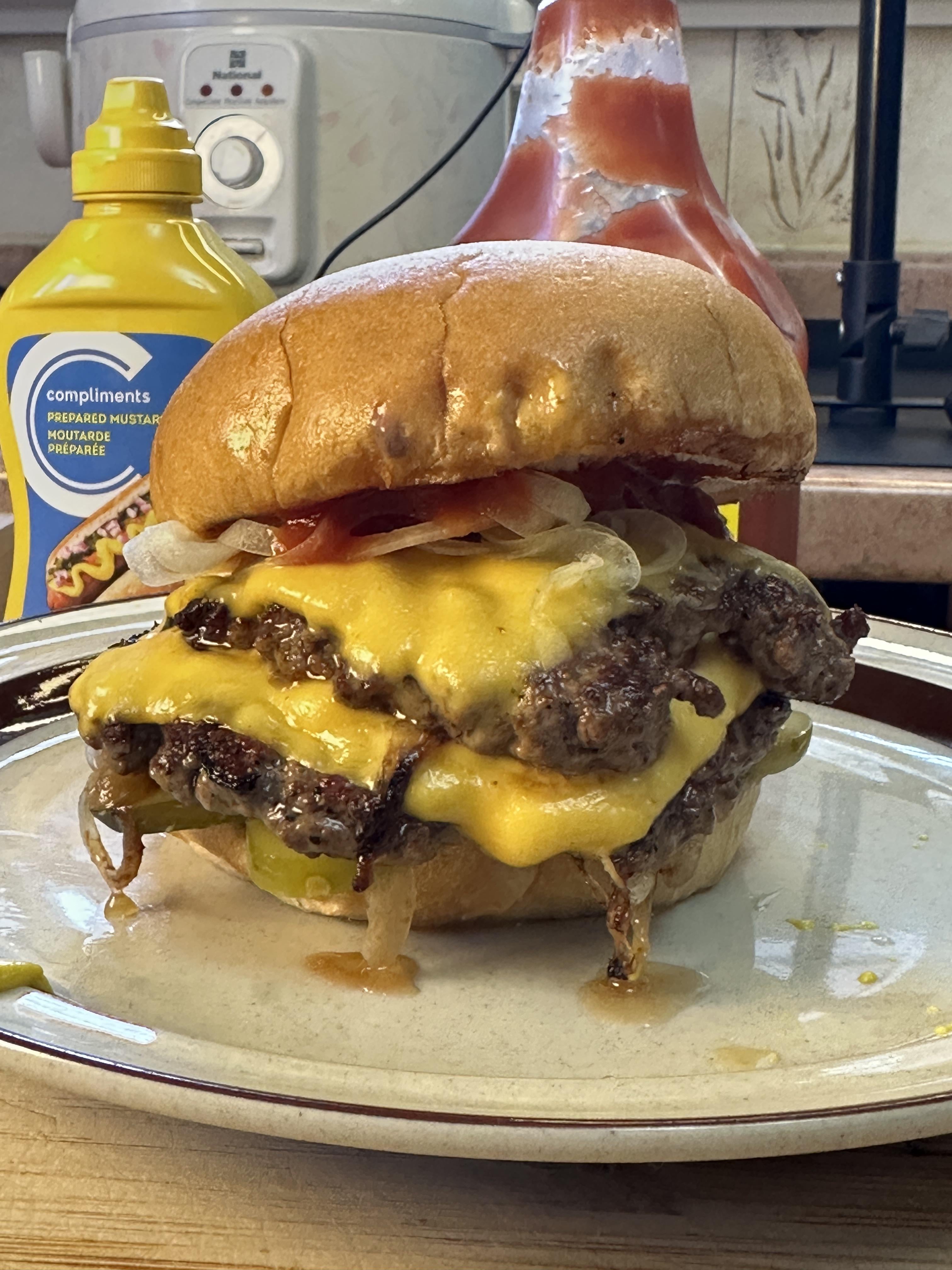 Homemade Oklahoma Onion Burgerby Highersteak 16 Comments AfterHoursAudio 4 months ago I’d demolish this in a heartbeat. Realk314 4 months ago looks great needs more bacon! MagazineDelicious151 4 months ago I’m officially hungry now, thanks PianoMore6653 4 months ago woww this looks fantastic n sooooo yummy NateInEC 4 months ago Killed it !! Looks delish !! HellaHellerson 4 months ago That looks good, man. Nice job! The_PACCAR_Kid 4 months ago It looks amazing!!! 😁 SouthernCount2723 4 months ago Yep…close enough to lunchtime to take the cover off the Blackstone to make this. Looks good! DrButterface 4 months ago Looks great – surprised about the ketchup though. Or is that bacon? Various-Age-5792 4 months ago Very nice Nitt7_ 4 months ago Oh my that looks so delicious!!!🤤mmm ewahman 4 months ago Very nice. Those onions are cut perfectly. Mandolin? HOFworthyDegeneracy 4 months ago  1973chrish 4 months ago This looks effing tremendous…. Massive_Long_276 4 months ago it just dripping everywhere I love it 😀 Intelligent_Cry7484 4 months ago I’m in tears 🥲 It’s so beautiful ❤️