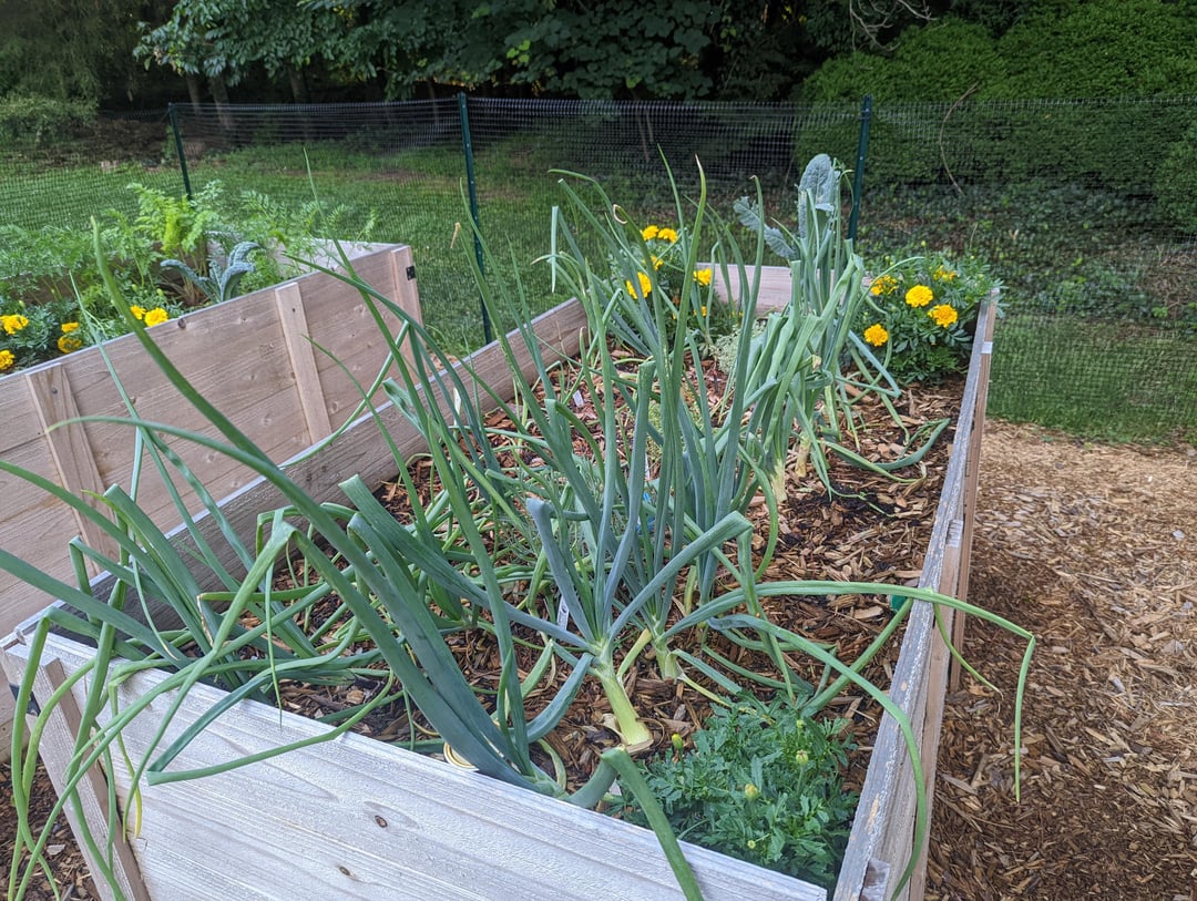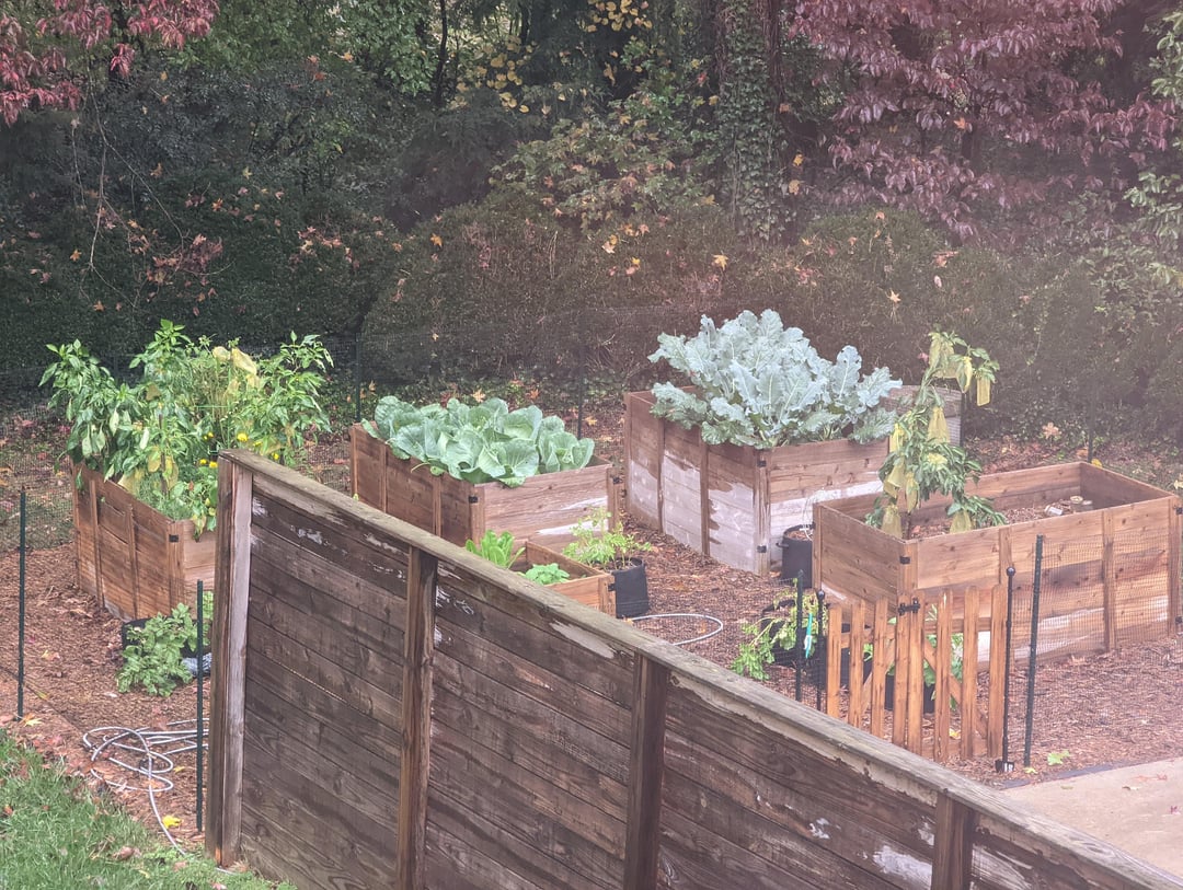 First year doing raised beds in NC. Nothing was there before, just grass. Ordered the beds, set them up, weed barriered the whole area, deer fenced it, mulched it, filled the beds, planted. Got through 3 seasons! Did lettuce, tomato, every common herb, broccoli, cabbage, carrots, onions, ginger, leeks, zucchini, cucumber, potatoes, peppers.