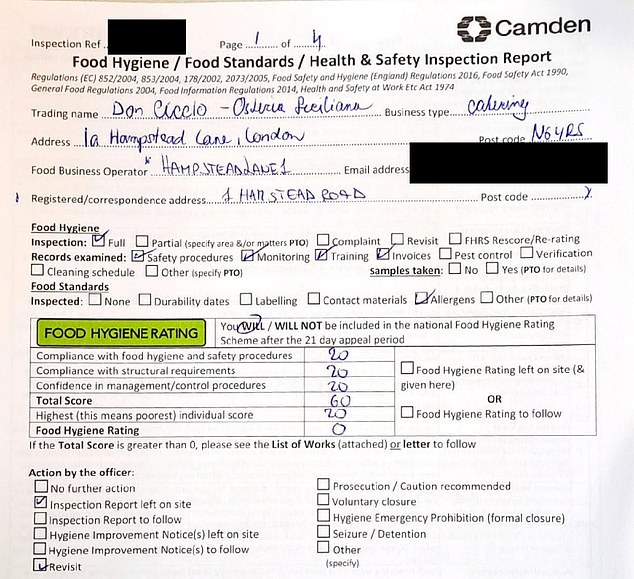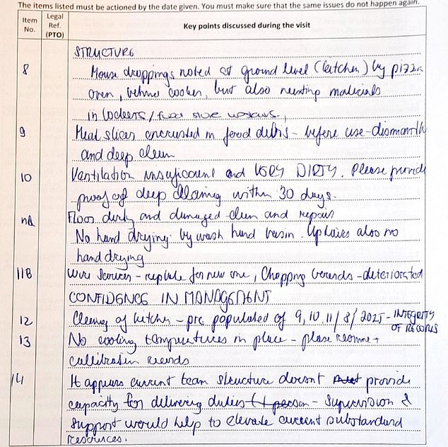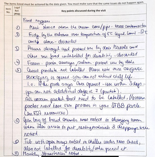 The shocking levels of bad hygiene at Don Ciccio were not a new phenomenon either, with the report noting that most of the issues had been spotted in the past and had not been tackled.