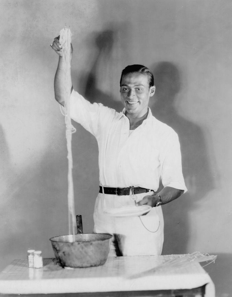 Rudolph Valentino with 6-foot-long pasta. / Courtesy of Donna Hill