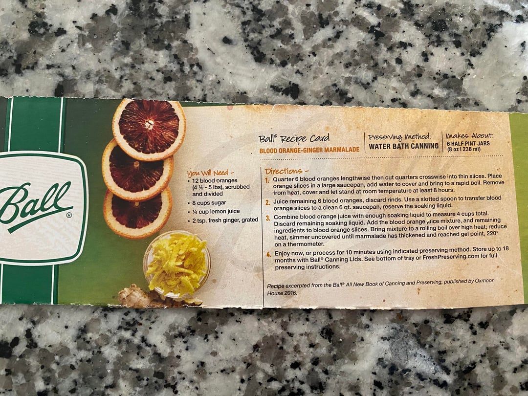 I saved this recipe off of a Ball box last year and a recent sale on blood oranges finally pushed me to make it!