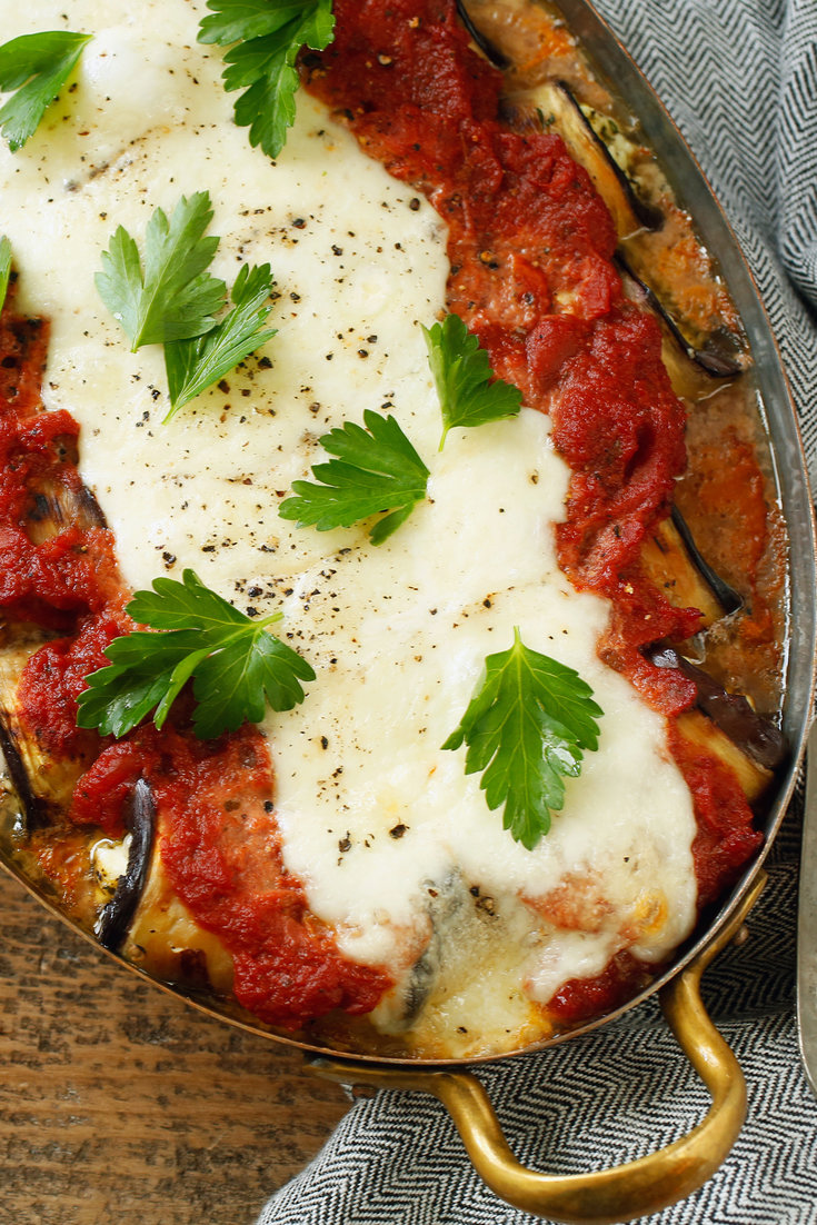 5. Bake until cheese has melted and eggplant is bubbling and fragrant, 25 to 30 minutes. Remove from heat and allow to stand 5 to 10 minutes. Serve hot.