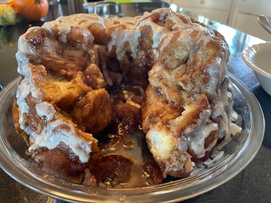 I remember eating the frozen monkey bread as a kid, my siblings and I pulling off pieces as fast as we could to eat as much as we could before it was gone. Today I made it for my parents, sister, boyfriend and daughter. They loved it!