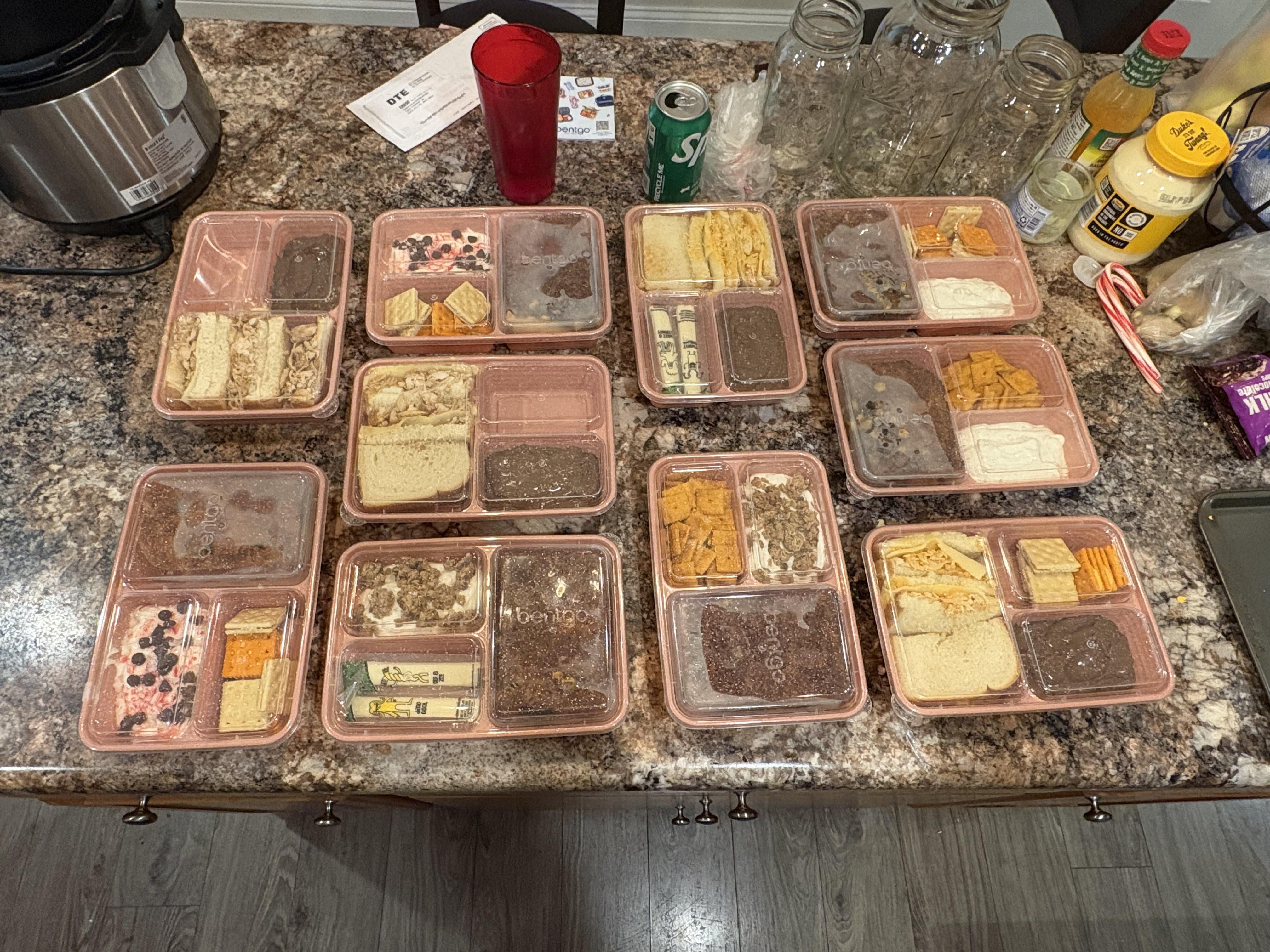 I would def try and cut back on how much of this is still highly processed… meal prepping cheez its and sandwiches is … honestly.. ??? Not really meal prepping IMO. We all start somewhere so it’s okay if this is the starting point but unless you’re allergic to vegetables or real food I’d shoot to do one full meal next week made from scratch in its entirety and work your way up to not just taking premade stuff and putting it into containers..