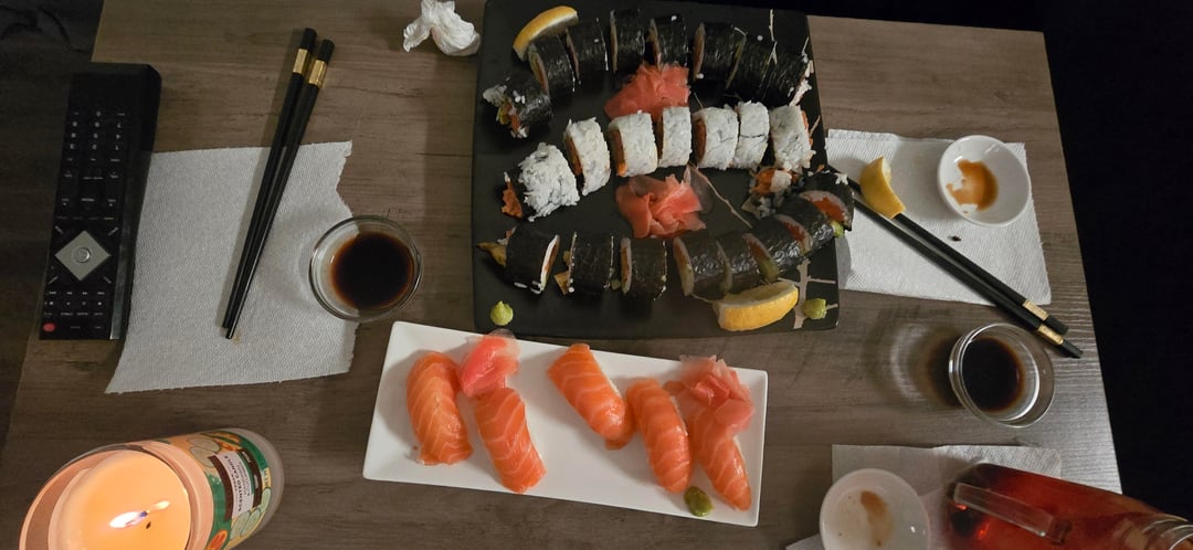 Looks so delicious! 🍣🍶 When are your online classes going to start? 🤣