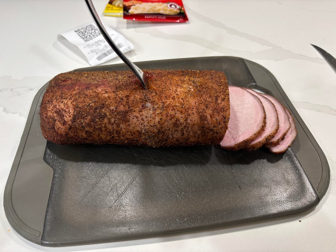 We love a good pork loin. I bought a deli slicer on sale and use it to slice up some meat for sandwiches and ramen.