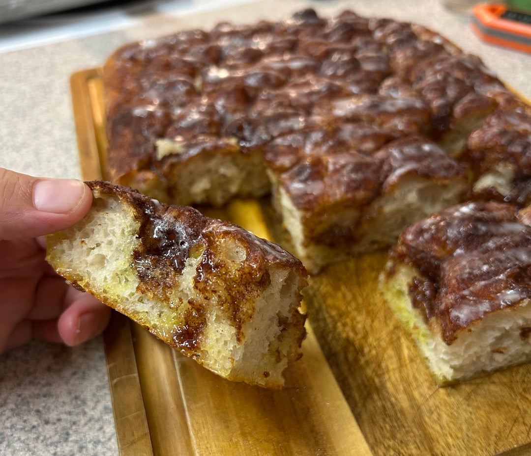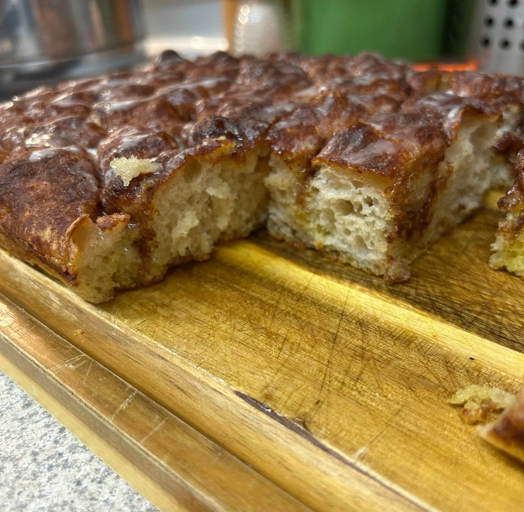 Preferment 150g flour 150g water Pinch o yeast350g flour 275 water 10g sugar 10g salt 3g yeast by ndnOUTLAW 9 Comments WillowandWisk 8 hours ago Love it! I posted my “apple fritter” focaccia last week, very similar! blubegnaro 8 hours ago wow, i was just thinking about something like this, thanks! i love the preferment! full_onrainstorm 7 hours ago what a genius idea. looks delish Ok_News_9372 7 hours ago Moravian sugar cake vibes Mmmelissamarie 6 hours ago Wow BibbidiBobbidiBoop 6 hours ago For those not as literate, could you expand on your recipe with more details on how you made it? It looks great. shanstermon 5 hours ago Ohh I like this idea. I’ve never thought of going sweet with focaccia. Looks great! PlatypusFreckles 4 hours ago I’ve been thinking about making sweet focaccia for the pst couple weeks, I really need to! awildgingersaur 4 hours ago My 2 year old calls any sweet bread “donut bread” lol. I should definitely make something like this for him to try. It looks delicious!