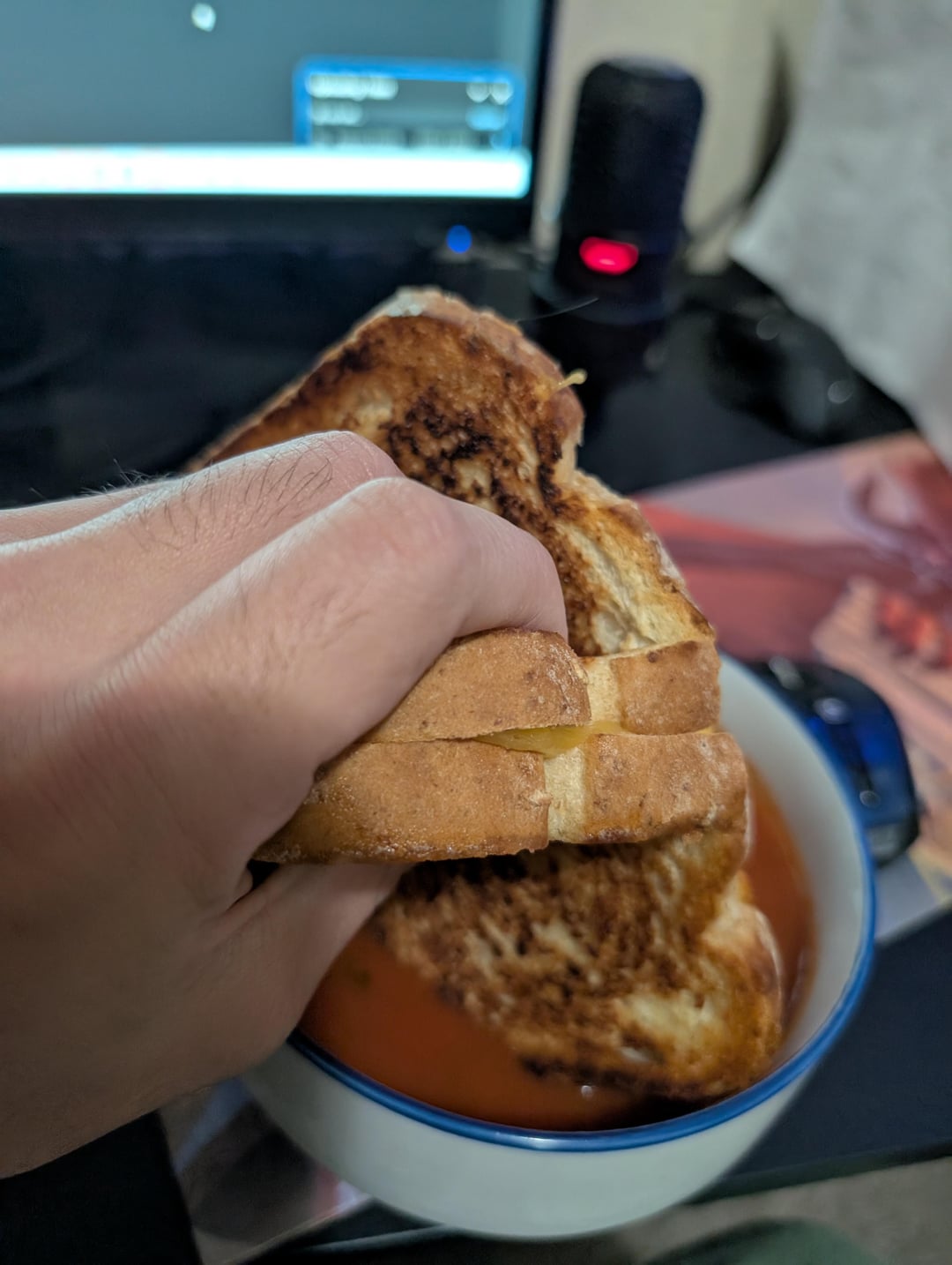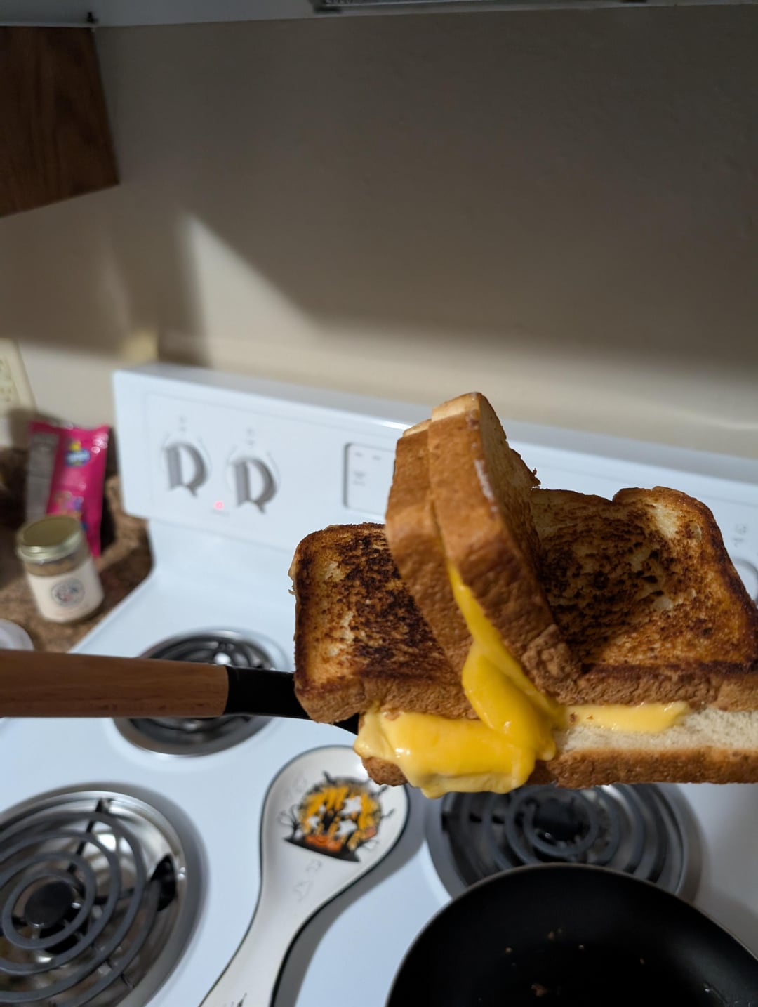 The added grip surface is good for dunking but honestly not much better than a normal grilled cheese. I was hungry sorry the cheese didn't melt, it was really hard to keep it in place