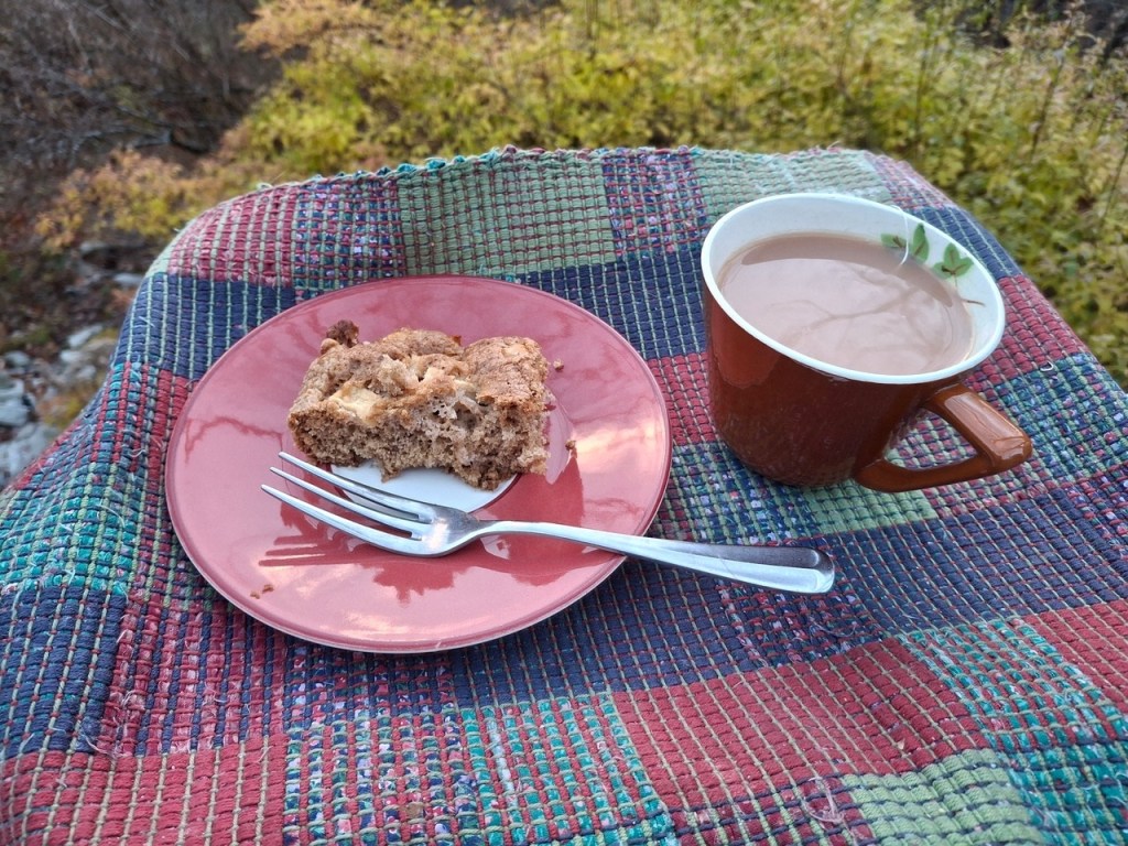 Cream butter, add sugar and egg, mix well. Sift dry ingredients together in a separate bowl. Stir in dry to wet (I always do this one-third at a time, and use a spoon, so the flour doesn’t get stressed). Fold in apples, spread in 8” greased pan. Bake at 350 degrees for 40 minutes.