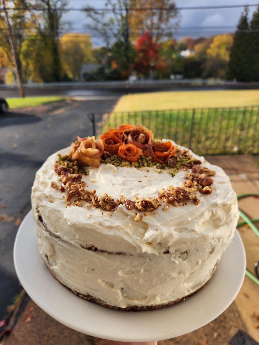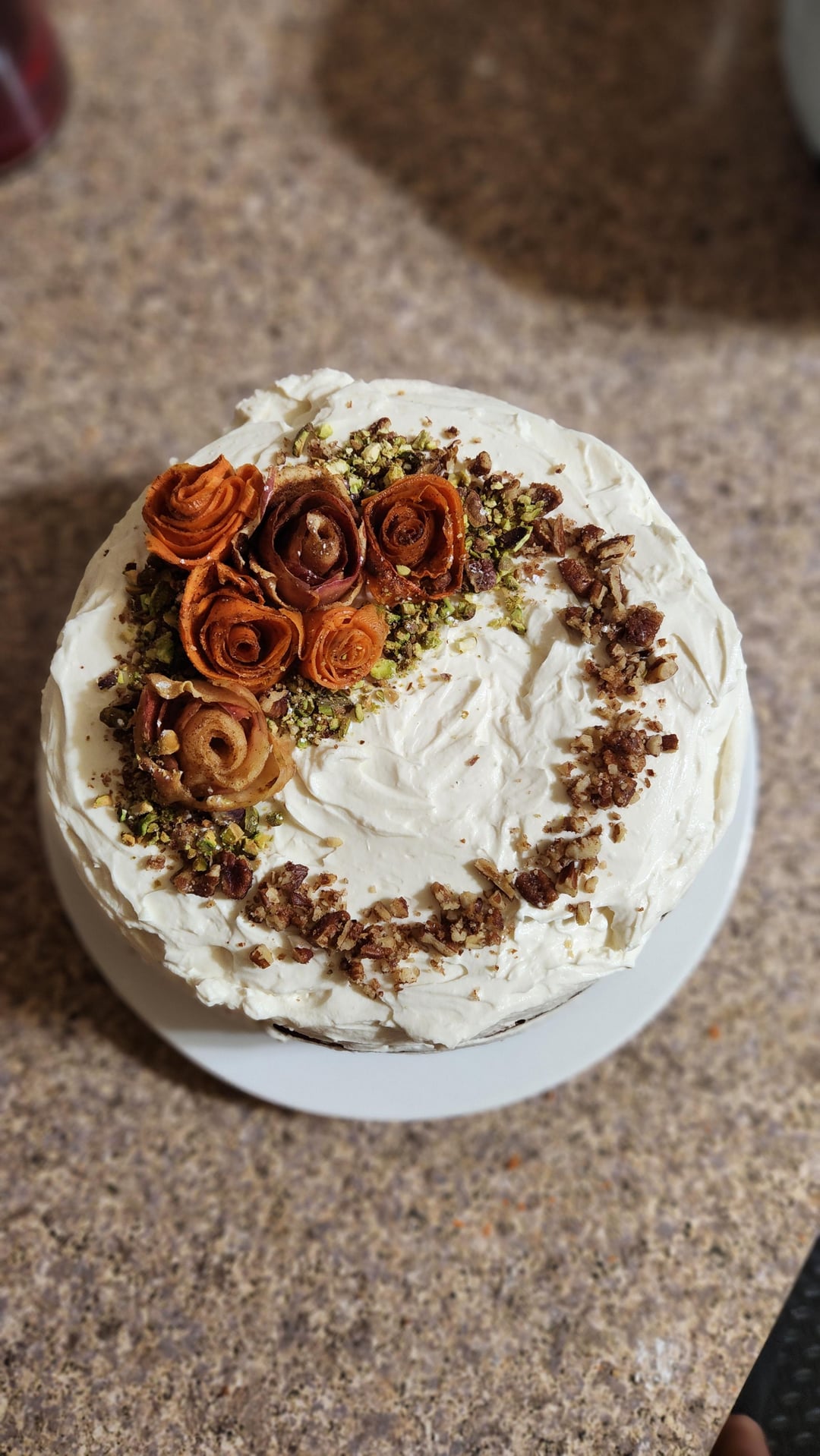 This was a lot of fun to make! I made the roses out of carrot and apple ribbons.by somewhereinthepines 23 Comments GlitterBlood773 14 hours ago Itβs just gorgeous!! I bet they loved it Then-Chocolate-5191 14 hours ago That is so beautiful! You better be their favorite relative now. Beneficial-Math-2300 14 hours ago That’s so pretty, and it looks delicious! I love homemade carrot cake; the store bought ones never seem to taste as good. Rose-color-socks 14 hours ago Ohh, this is beautiful. It’s got a rustic but elegant vibe. Very pretty. AS_hi 14 hours ago Sooo lovelyy!! WhovianHippie 14 hours ago This is beautiful, OP! Love the colours π dollypardonmedear 14 hours ago What a beautiful cake! Those carrot roses are chefs kiss niceabear 14 hours ago So beautiful. Great work No_County8426 14 hours ago Amazing, totally stealing the rose idea for my next one! actuallykat 14 hours ago Love the roses! Is that pistachios and pecans on top? Fuzzy_Welcome8348 14 hours ago Looks gorgeous!! OkReputation7432 13 hours ago I thought it was salami on top, Iβd still eat it π Panikkrazy 13 hours ago Thatβs the prettiest Carrot Cake Iβve ever seen. And Iβm mad I wonβt get to try it because I bet it tastes just as good as it looks. ImpossibleNovel1533 13 hours ago Those flowers are perfect Previous_Design8138 13 hours ago So special! sunshineface 12 hours ago Swoooooon! Cherry_Poppins9205 12 hours ago Nicely done. Almost too pretty to eat everyday_em 12 hours ago The carrot roses are beautiful! Synlover123 11 hours ago Can I be your relative, too? π€ I love the aesthetic of this little beauty. dramondas 10 hours ago Love it! anasalmon 10 hours ago Omg that looks so delish Working_Dance8753 9 hours ago Splendid! Did you just roll the carrot ribbons and apple skin as is, or did you dip them in something either before or after rolling them? sassylindaM 8 hours ago Woow looks so delicious awesome work