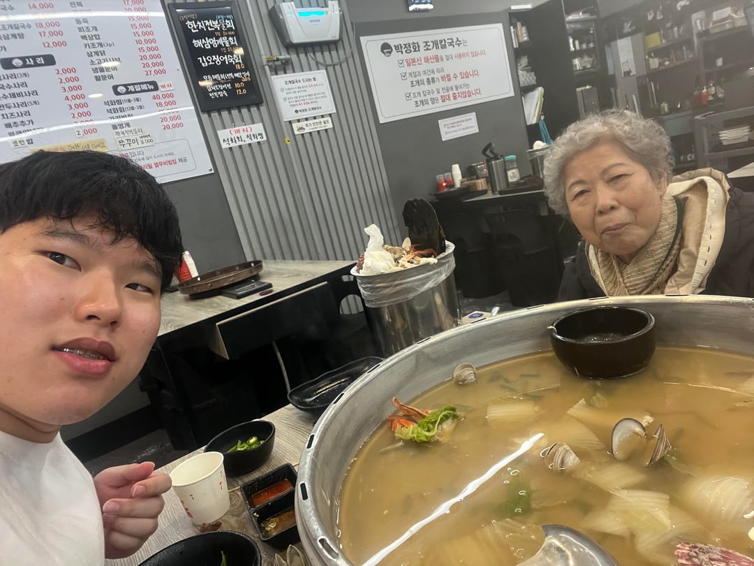 Me(18) and my grandma(83) went to the clam restaurant together. We were a bit overwhelmed at first but eventually finished everything. Very delicious, 10/10 will certainly go there again. Couldn't eat noodles though. Btw its my first face reveal in Reddit❤️🔥❤️🔥