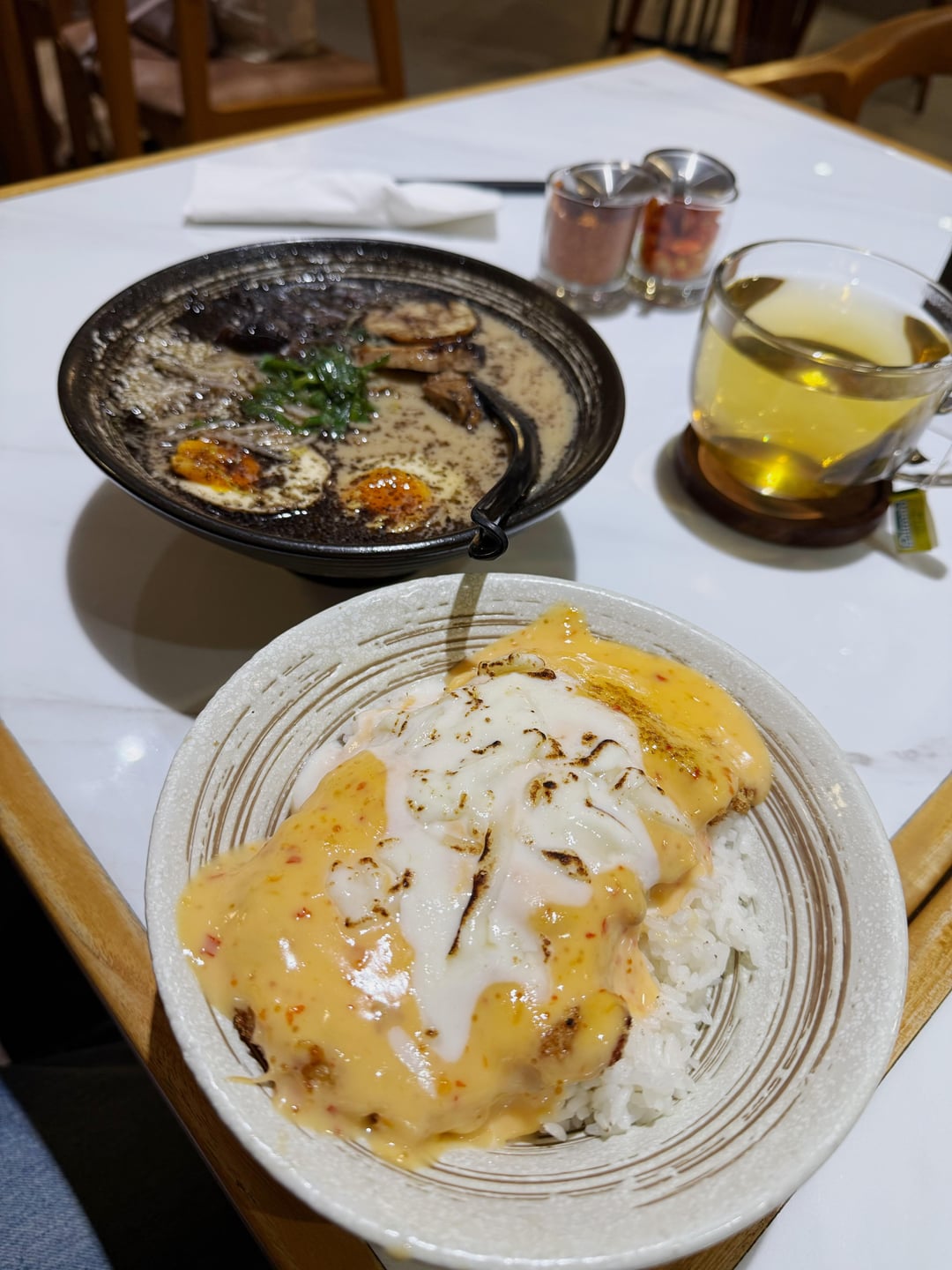 Tonight’s dinner: chicken wings, ramen and chicken mentai rice