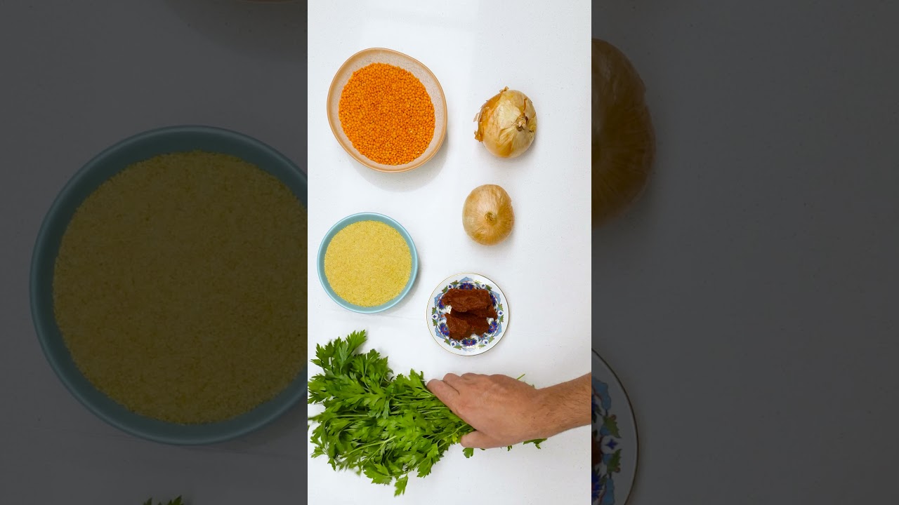 La magia empieza con ingredientes simples: la base son nuestras lentejas rojas y el trigo burgol fino. Para la increíble base de sabor, usamos cebolla (soğan) sofrita en un buen aceite de oliva con pasta de tomate. Y para la frescura, que es el secreto más importante, un montón de perejil y cebolla verde bien picados. El toque final que le da vida a todo es el jugo de limón.