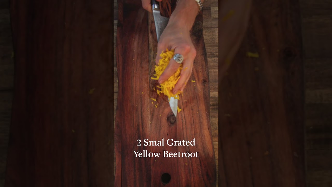 Crisp green paw paw, carrot, and yellow beetroot form the base — shredded fresh and alive with enzymes. Then comes a handful of lettuce, lemon balm, parsley, mint, and even carrot tops, adding chlorophyll, minerals, and life force.