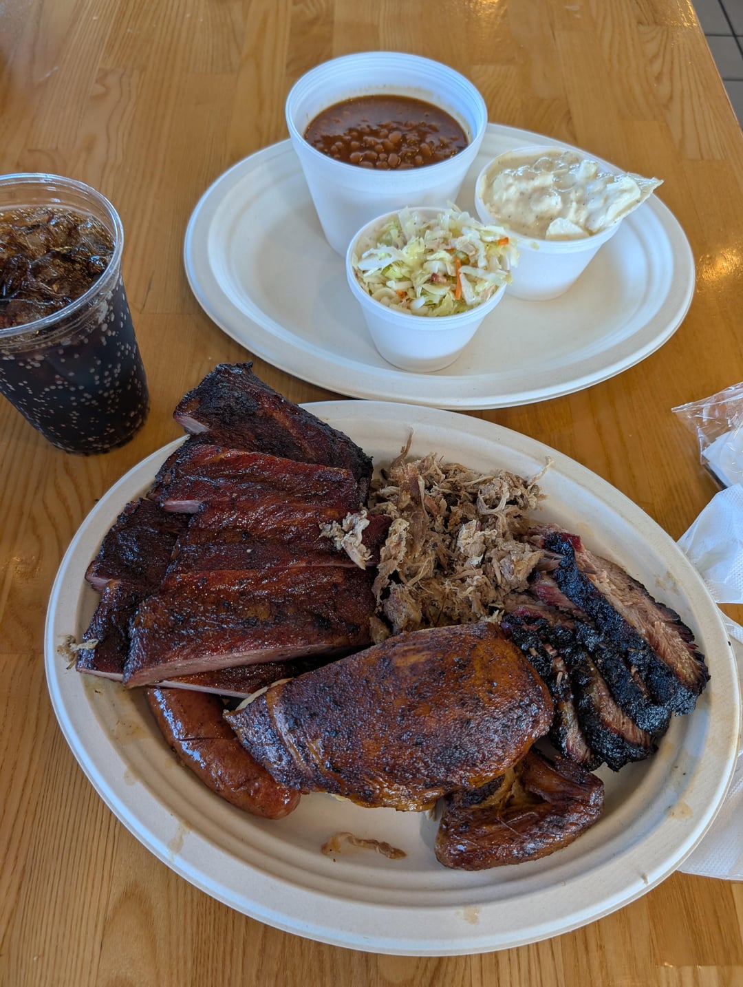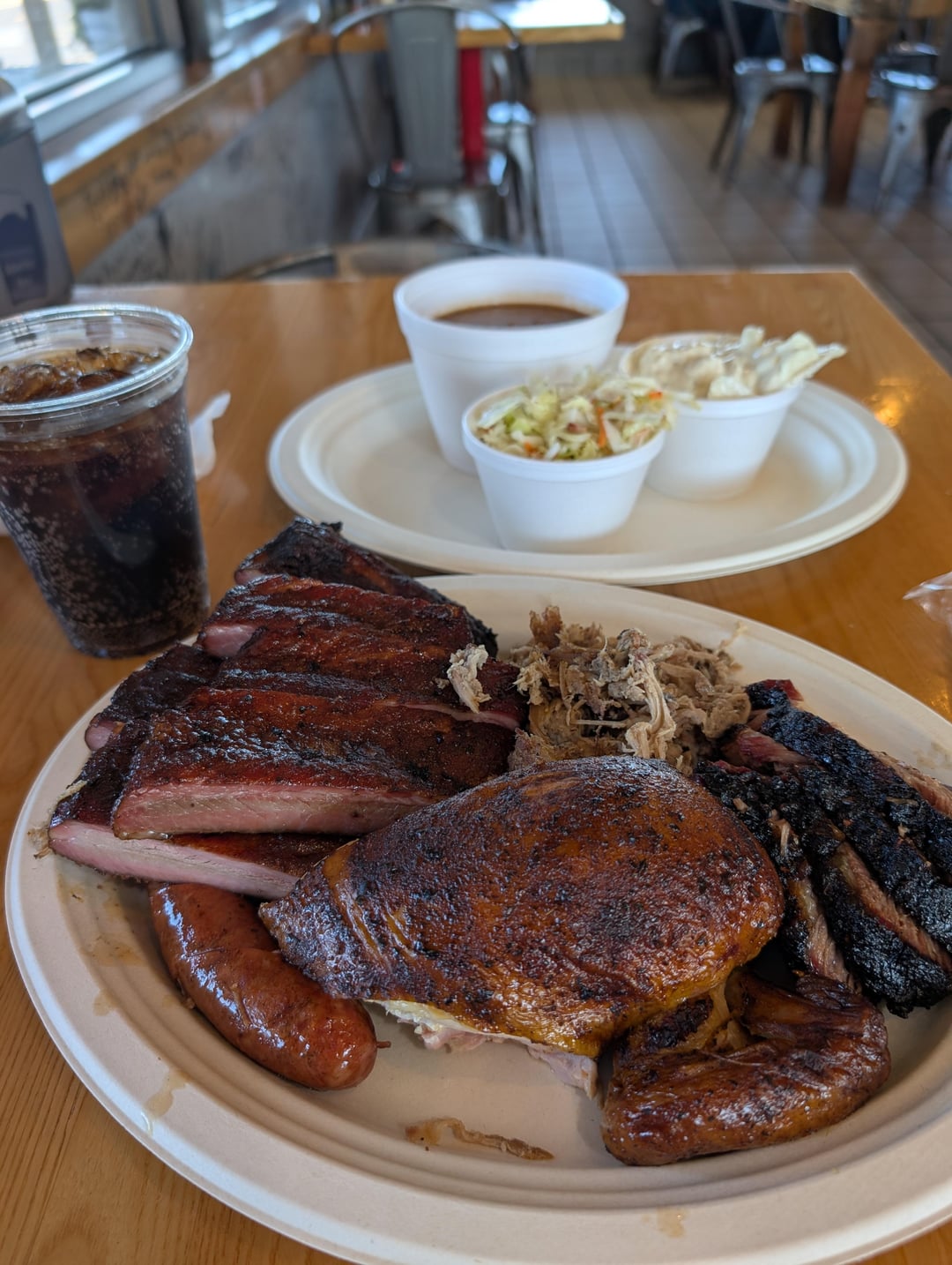 There’s a place in Napa CA called Bounty Hunter where you can get two meals worth of food for $50. It is not exactly elite level bbq, but it is pretty good and the price is right. Plus they have a full bar.