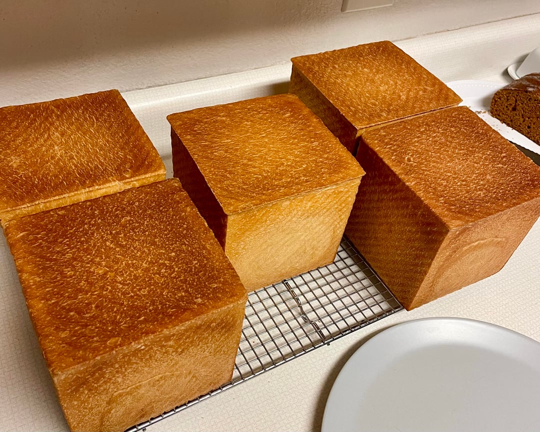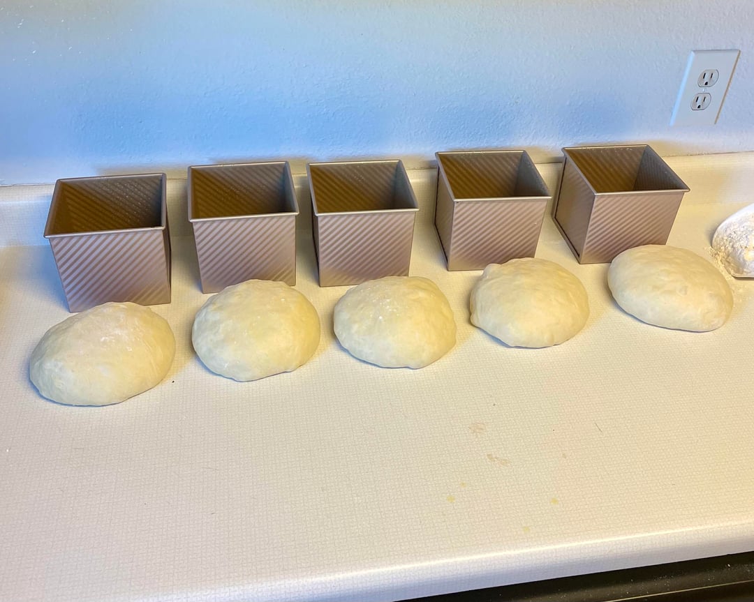 I just hand mixed 5 loaves of Shokupan (4kg of dough)