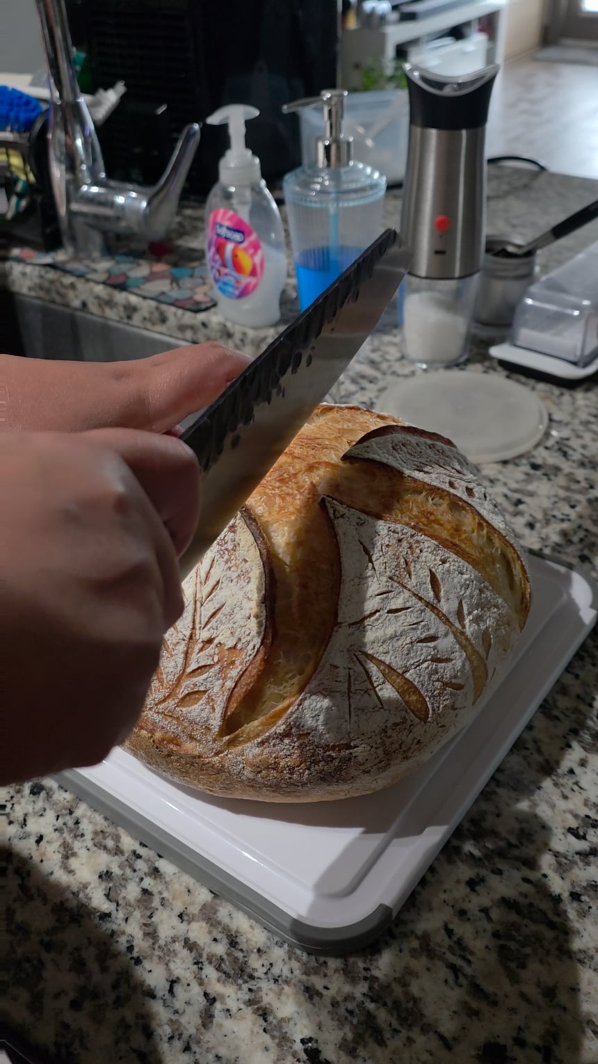 Who has the ability to make a loaf like that and doesn’t have a bread knife?!