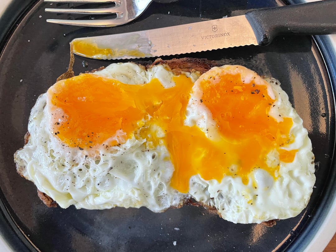 I prefer mine over medium when I got out, but I like them slightly runny when we’re at home. I do love that crispy edge thing at times! Reminds me of grandma’s cast iron skillet.