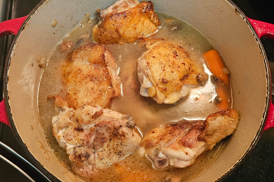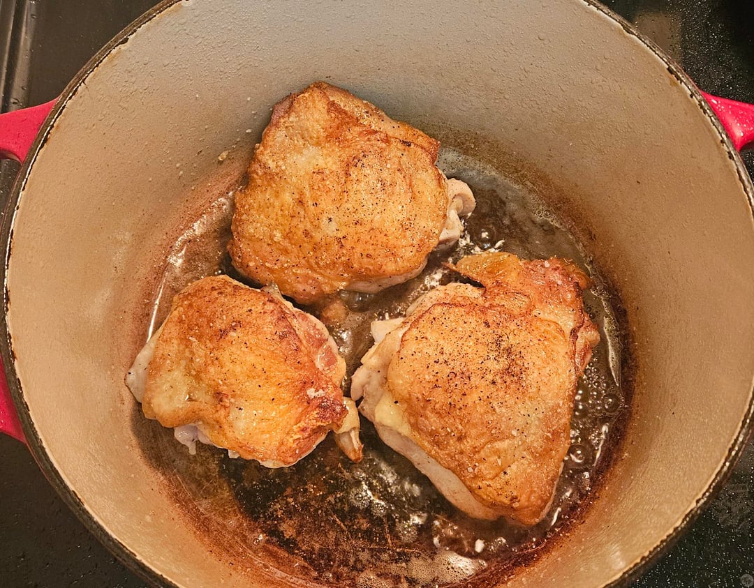 Oof. I forgot to mention: you can lightly dust your chicken with flour before browning to help thicken the soup. I do maybe 50% of the time, depending on how thick I want the finished product to be. 🙂