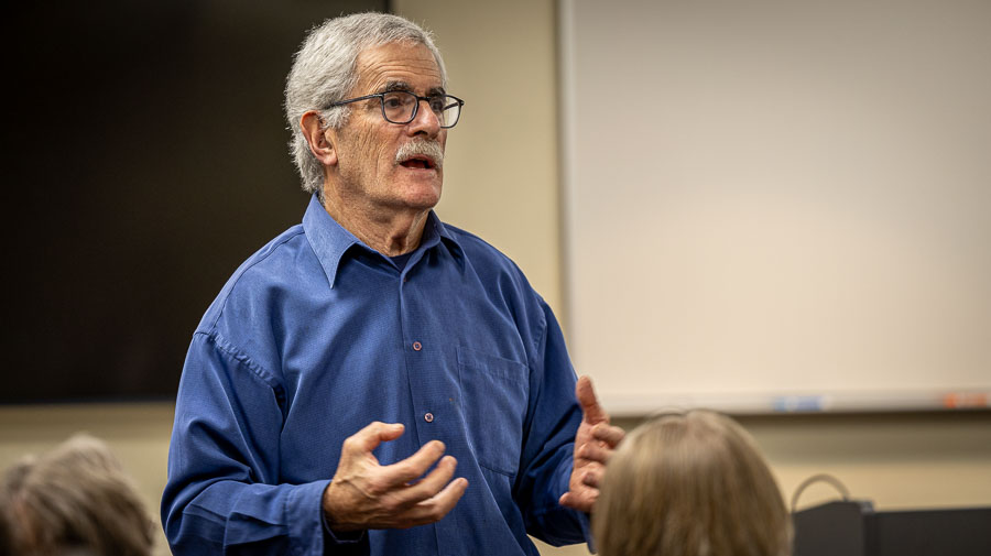 Sen. Jeff Golden answers a question at a town hall meeting in Ashland in January 2024. Ashland.news photo by Bob Palermini
