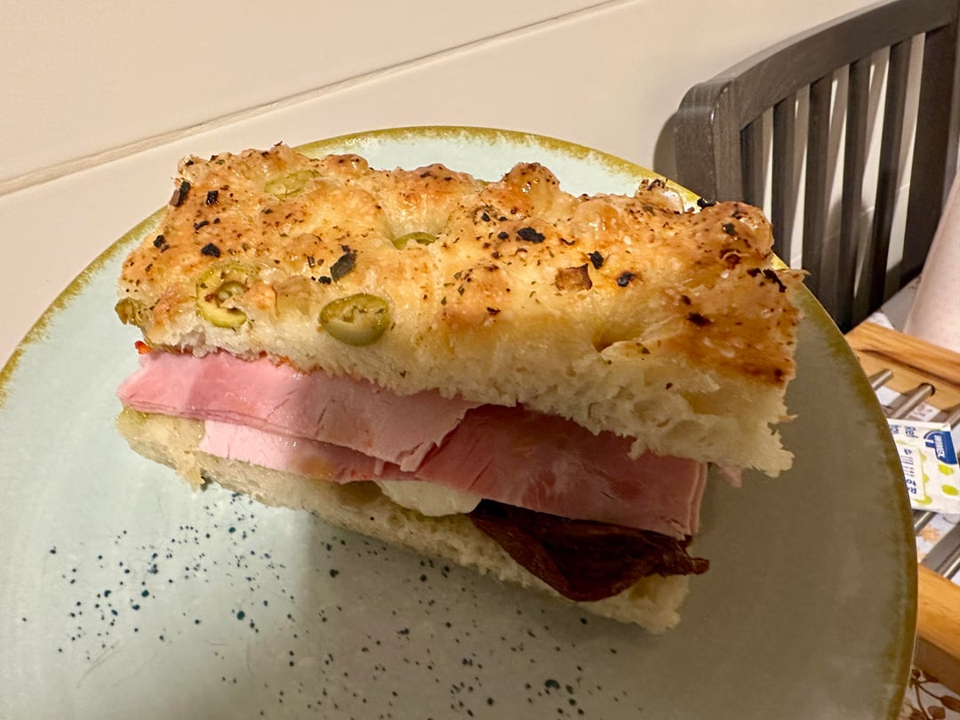 Focaccia made with the recipe from Emma Fontanella😁 I have added prosciutto cotto, mozzarella,pesto, dried tomatoes, olives. It was amazingggggg! I love Italy❤️❤️❤️✌️