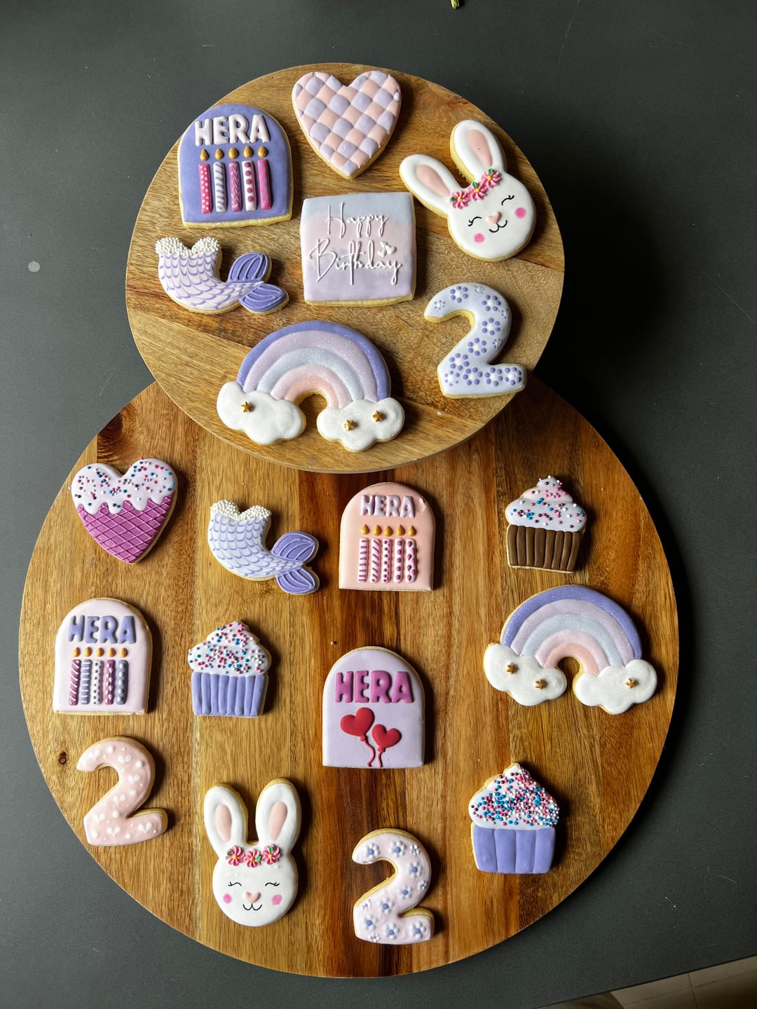 My daughter turned 2 today and is always watching me decorate cookies so of course I said I would make her some birthday cookies and she can choose the cutters. Rainbows, cupcakes, mermaids, bunnies and hearts lol by kswishy 2 Comments Legitimate-Suit7238 6 hours ago So cute!! Really nice job! PretendHistory6904 5 hours ago So cheerful!!
