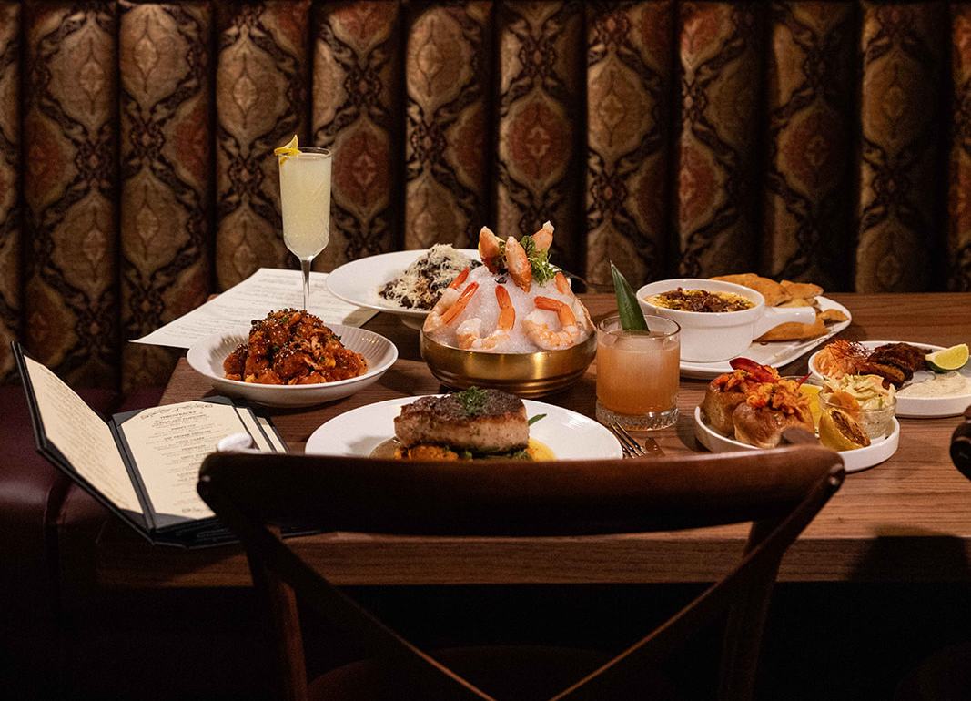 Amelia’s isn’t trying to be a speakeasy (there are already four of those on Front Street!), but it feels exclusive, at least at first. It’s located in the lower level of its much more casual big-sister restaurant, The Farmer’s Rail, which serves burgers, sandwiches and salads highlighting the wares of its farm and butcher shop. So far, though, there’s no signage to clue diners in to the exact location.