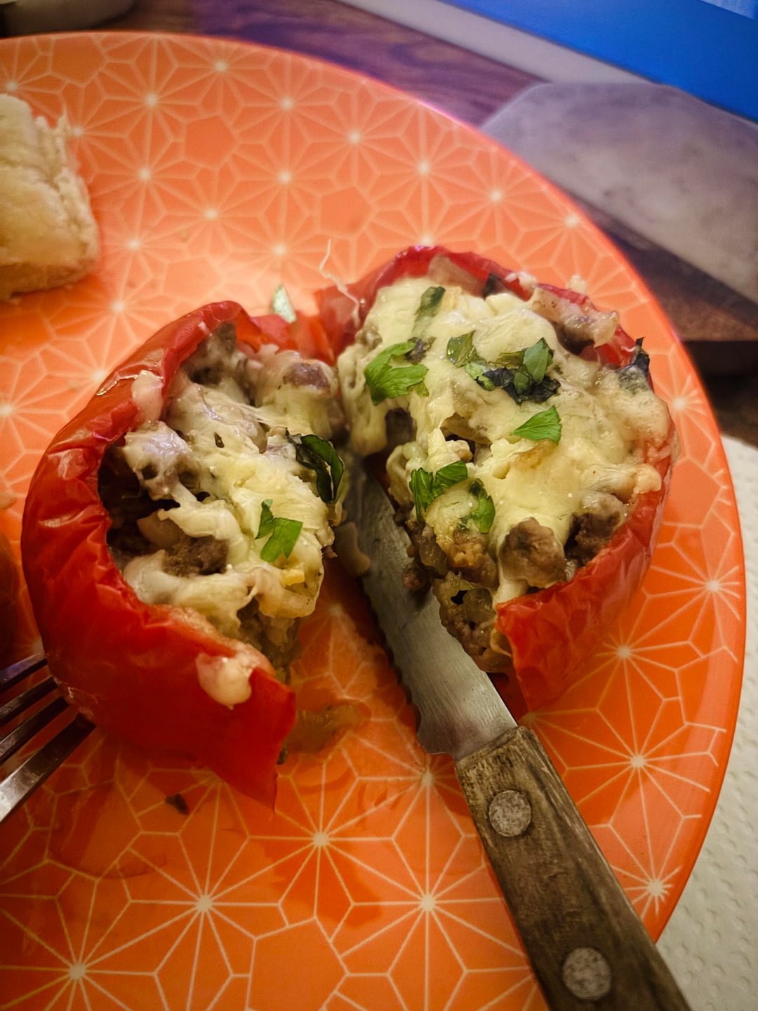 Keeping up my wedding budget cooking with the slow cooker! I’d never made stuffed peppers in one, but they came out really well.