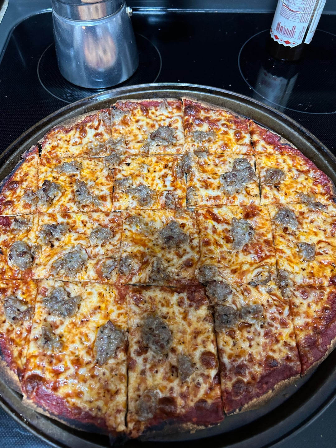 I cranked out a few tavern pies using Kenji’s method. I followed it pretty closely other than using store bought Italian sausage. This is the style of pizza I grew up eating and I was excited to give it a try. I think they turned out pretty good.