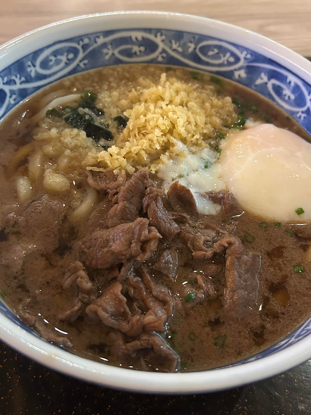 Mmm, I love me some beef udon. Never seen it with egg, though.