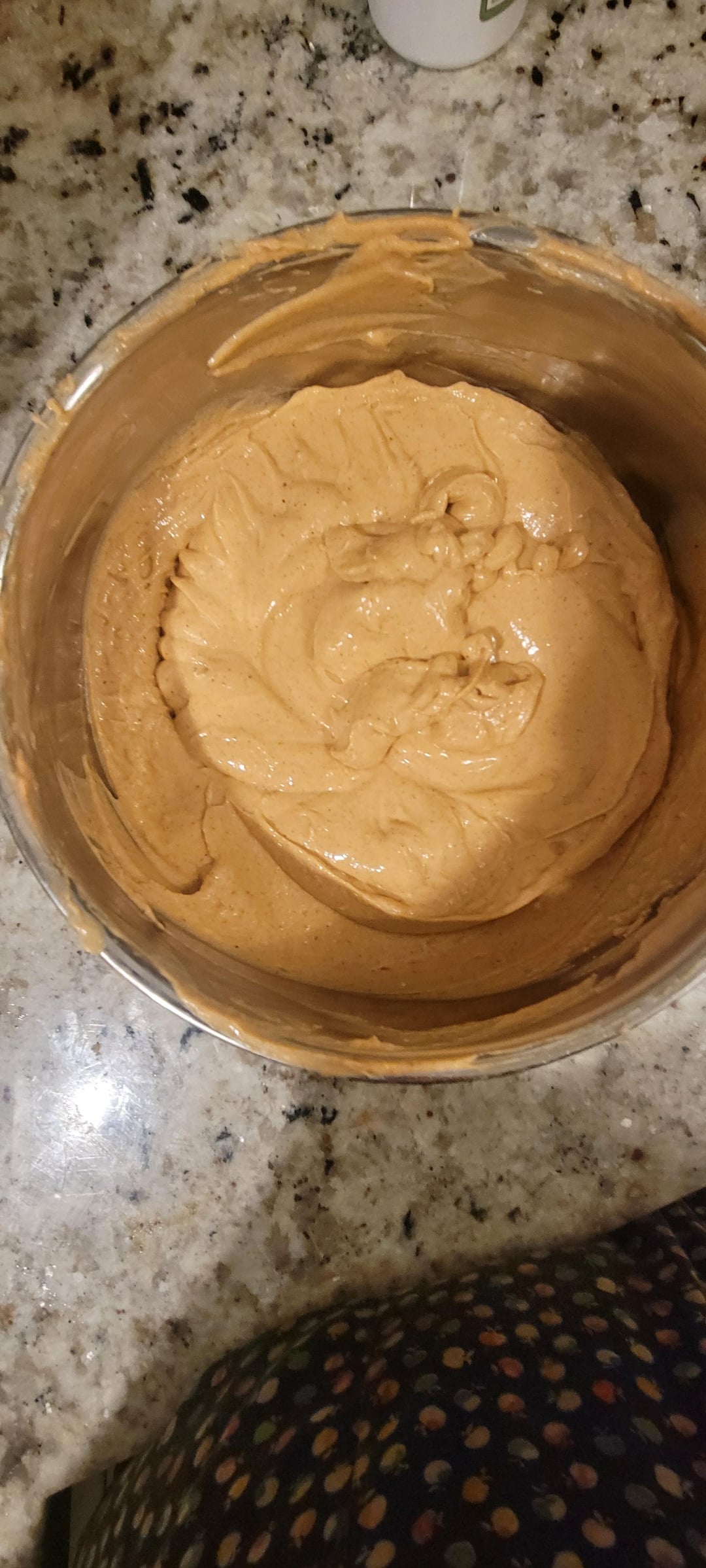 Beat in the pumpkin puree, pumpkin pie spice, cinnamon and vanilla.
