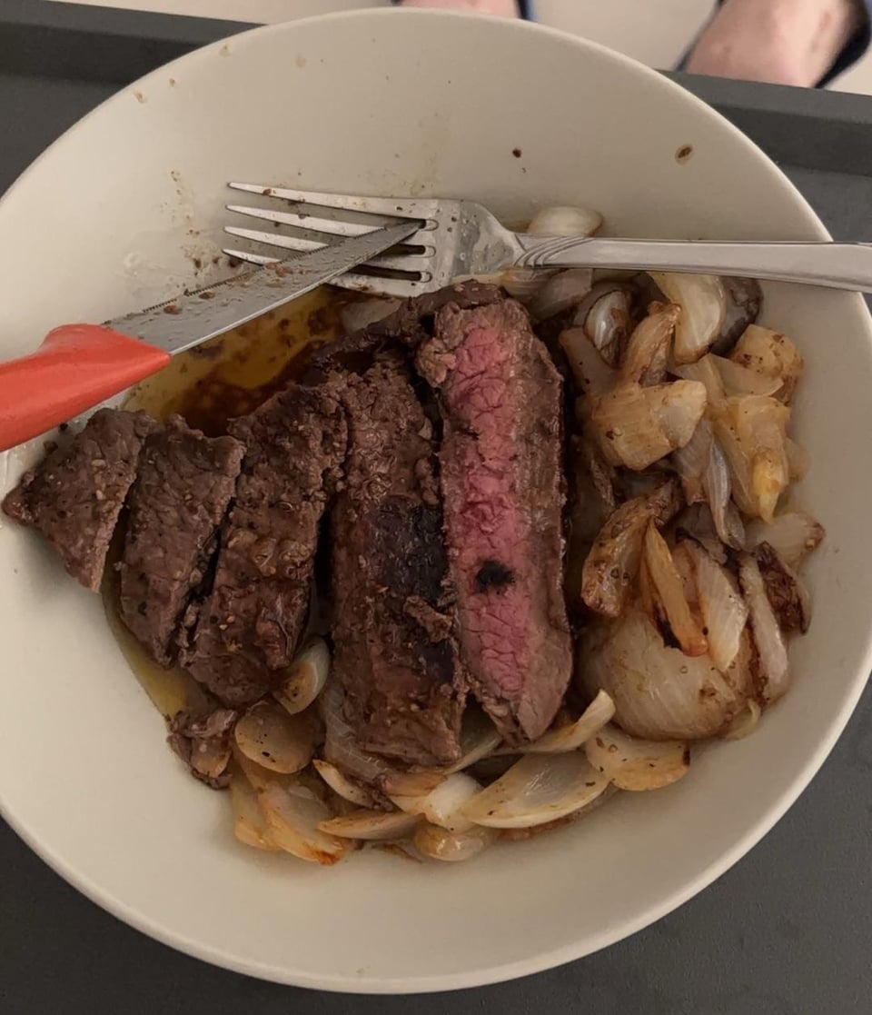 Onion poached steak… I’m sure it was tasty though.