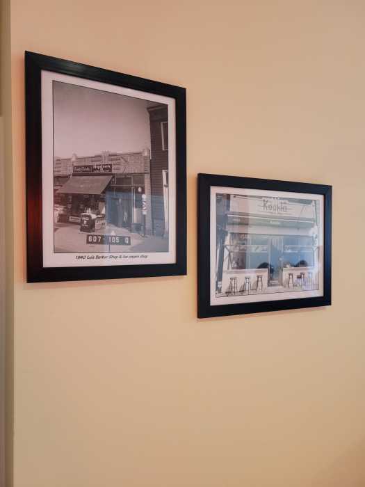 A photo of the space’s original business in the 1930s, next to a photo of Koukla.Photo credit: Jessica Militello