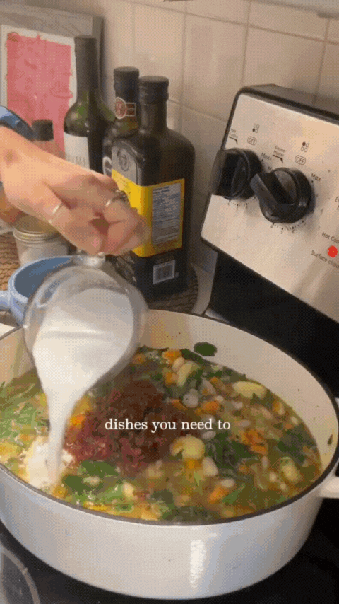 1. Prepare your veggies by dicing onion, finely chopping carrots and celery, and mincing garlic. 2. To a large pot on medium heat, add olive oil, then throw in your onion, carrots and celery and sauté for a few minutes. Add in the minced garlic, Italian seasoning, salt and pepper and stir well, cooking for another few minutes. 3. Add in vegetable broth, then cover and bring to a simmer. 4. Once simmering, add the gnocchi. Next, add in a can of drained and rinsed cannellini beans. 5. Roughly chop greens and cilantro and add them in, covering for 2 minutes to help them soften. 6. Finally, add in your coconut milk and chopped sundried tomatoes and stir well. 7. Serve immediately, and enjoy!