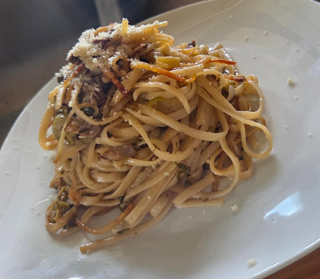 Pics 1 and 2 are classic saucey style with pan roasted chantrelles. Pics 3 and 4 show a crispy noodle variation. Both were fantastically delicious. I know this is not fresh pasta like many of these posts contain, but I actually prefer dried pasta for this particular application.