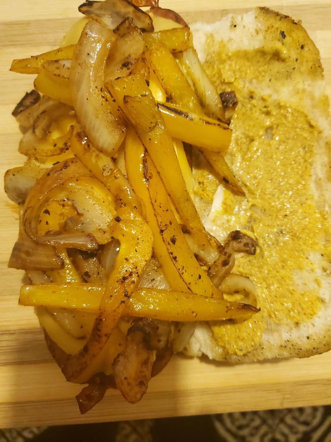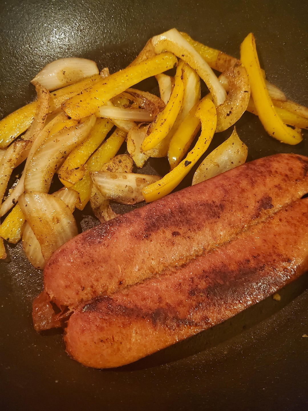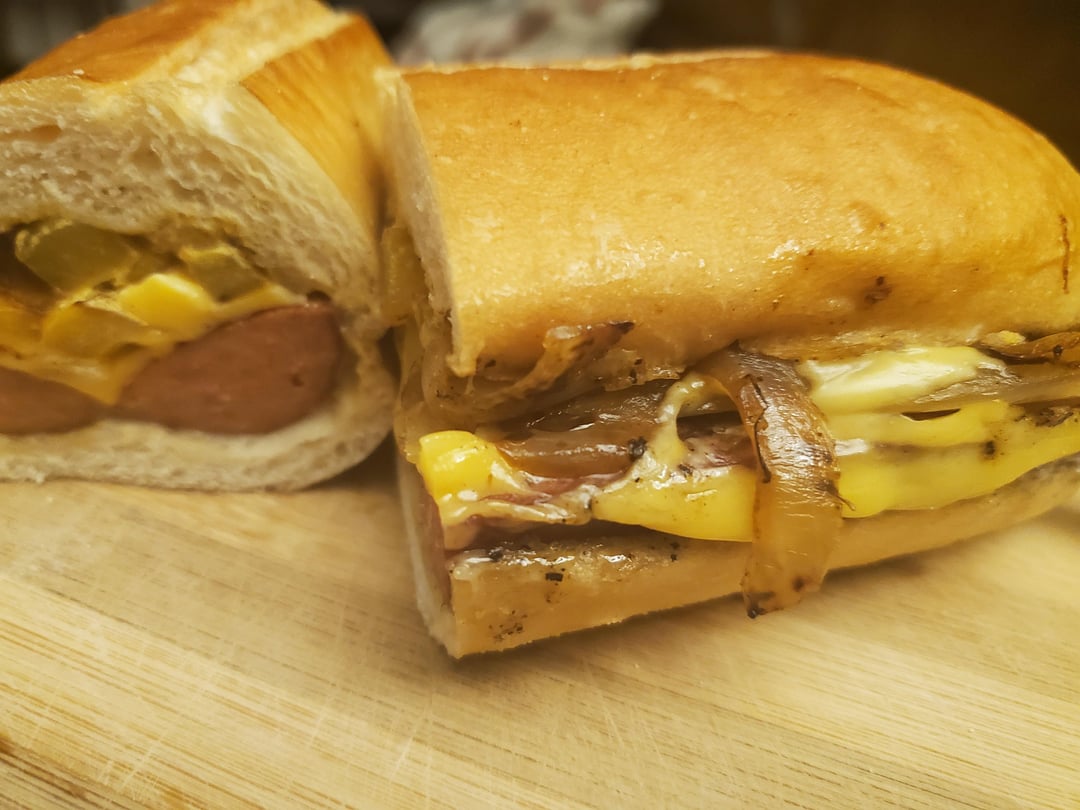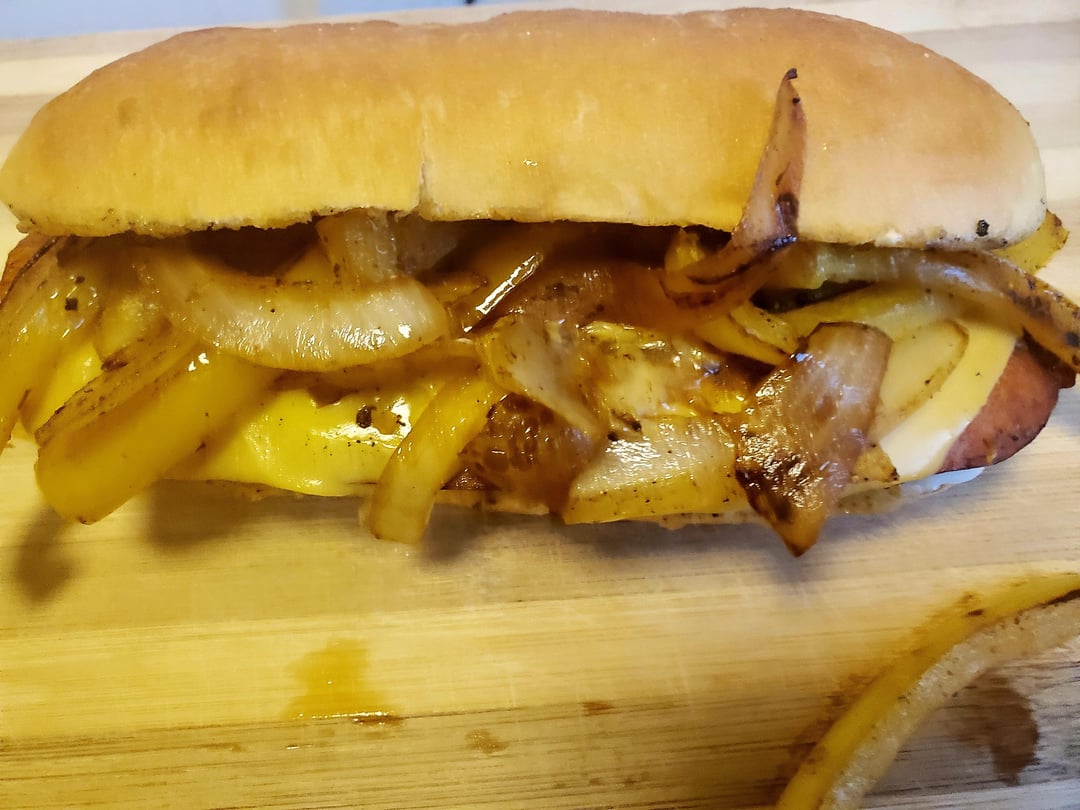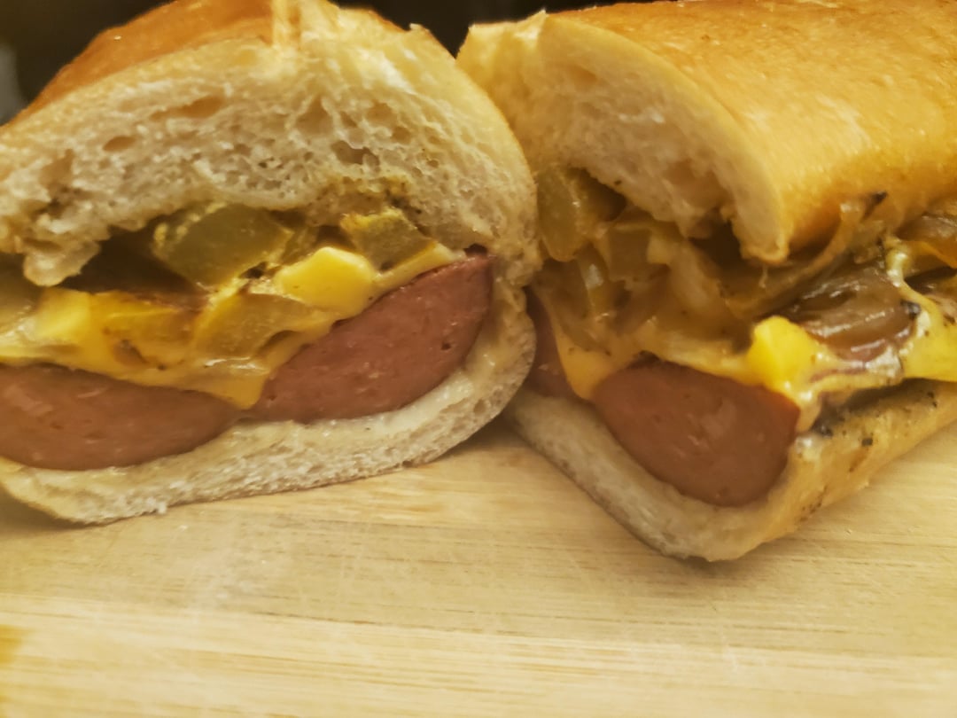 Grilled split hot sausage with onions, bell peppers, and American cheese. by mlong14 2 Comments musKholecasualty 4 months ago Nice MagazineDelicious151 4 months ago Looks good