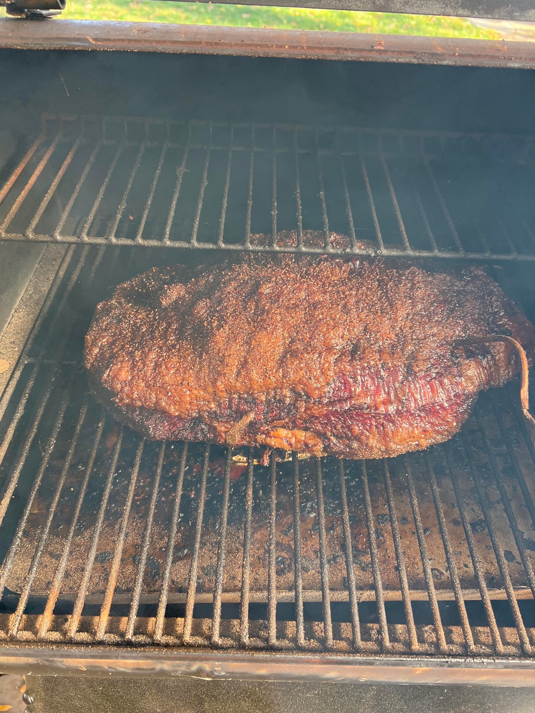 I smoked a 19 pound prime brisket I got from costco overnight last night. Pepper salt and meat church holy cow for 15 hours at 220. Just wrapped this morning at 165. I don’t think my bark looks proper
