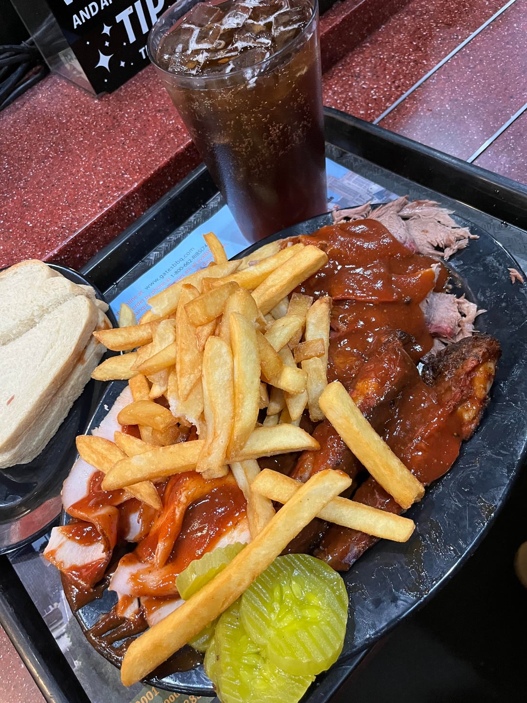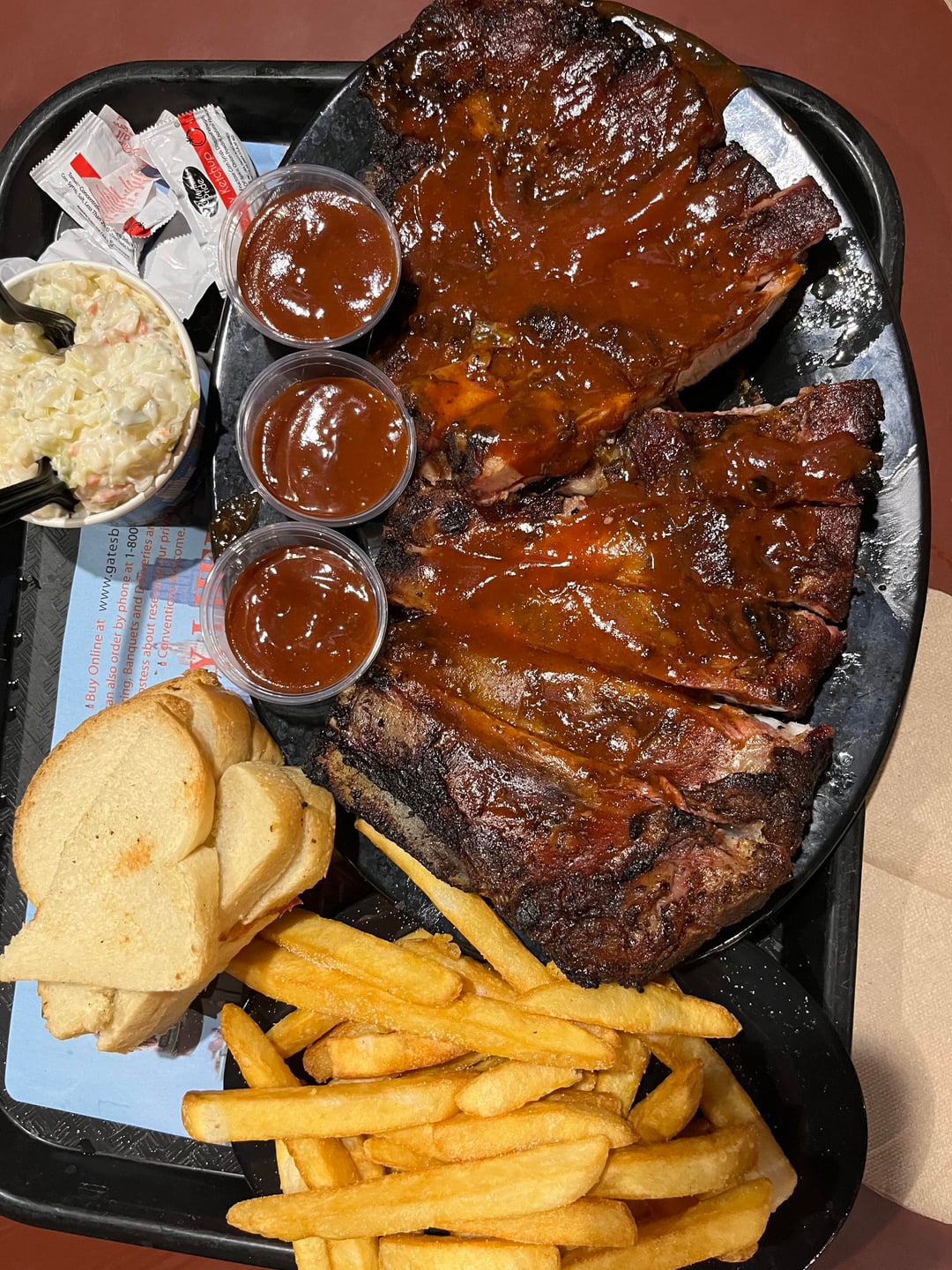 Pictured is their mixed plate, a full rack, and their burnt ends sandwich. Their fries are distinctive and so good!!by TruckEngineTender 5 Comments kdub64inArk 9 hours ago Hi may I help you.It’s been over 5 years since I have heard that greeting and have to admit I miss it. 21dfrost 9 hours ago that looks insanely good man, gates always hits different when the sauce is heavy like that ONROSREPUS 7 hours ago I enjoy Gates. My wife doesn’t. It seems like most people I talk to about Gates its a love it or hate it place. MagazineDelicious151 6 hours ago Looks pretty tasty to me jpierce03 5 hours ago Looks like shit
