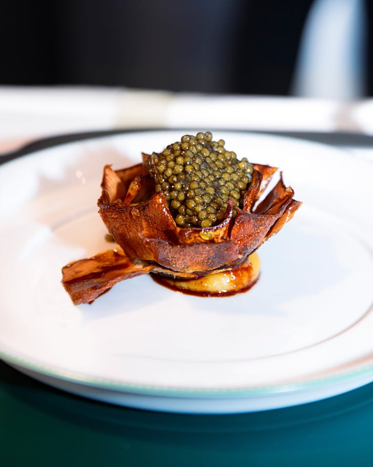 Sporting two Michelin stars, Le Clarence is a truly special culinary adventure—one you absolutely need to experience when visiting Paris. Starting with the space, every inch is decked out in opulence, from the velvet furnishings and wood paneling to chandeliers that wouldn’t look out of place in a castle. But back to the food, the seasonal menu is thoughtfully curated by Chef Christophe Pelé, who infuses his penchant for innovation into every dish. Think: vol-au-vents stuffed with veal sweetbread and calm, topped with black truffle, venison with foie gras and lobster gratin. Thirsty? Their wine cellar has over 1,500 bottles sourced from over 500 winegrowers across France.