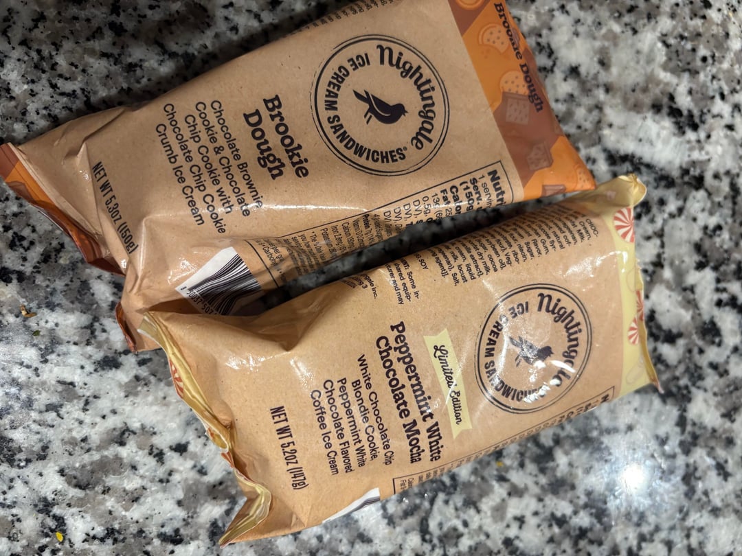 Apparently I still havenāt learned my lesson because I couldnāt resist trying these new flavors of Nightingale Ice cream sandwiches when I saw them at a small local market. Iāve made posts before in this sub about what they get right and wrong in my opinion. Iāve seen others say the same about the texture of their ice cream being so gummy, weird, and a far cry from how the original version was before they expanded so far out of Richmond Virginia. These flavors looked interesting to me and I was again, hoping that Iād get lucky and pick up one that had a new recipe. Iāve noticed the Cookie Monster flavor is one of the best because it doesnāt seem to have as much of the gummy texture as the others. Maybe it has less fillers idk.