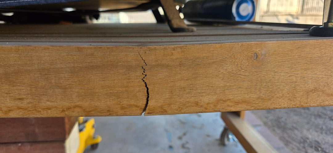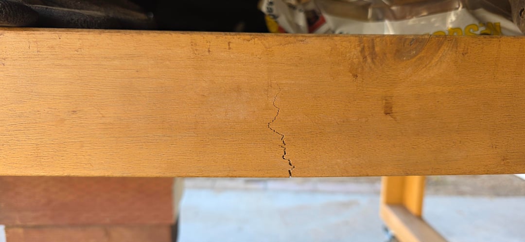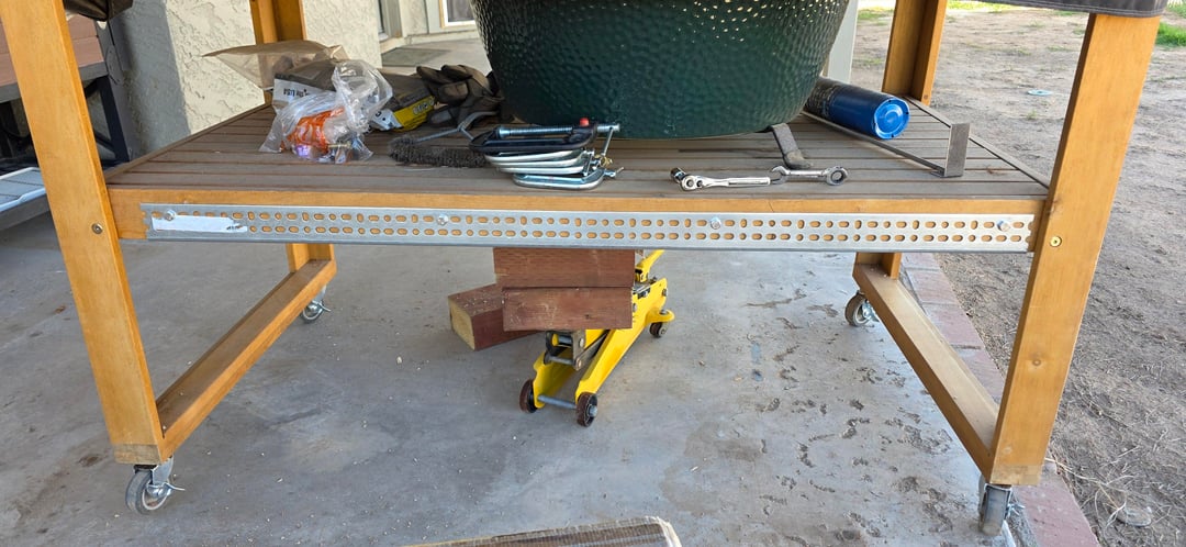 Here's an update to my fix for a cracked Acacia BGE XL table. I bought a couple 4' metal brackets from Home Depot, as well as some fastening hardware. I used 5/16" x8 bolts. I had to use multiple 4" clamps to squeeze the cracked wood and bracket together, which eventually closed the cracks. Not as bad as fix as I thought it would turn out to be. Make sure to keep the bottom of the table jacked with weight spread across all 4 crossbeams.