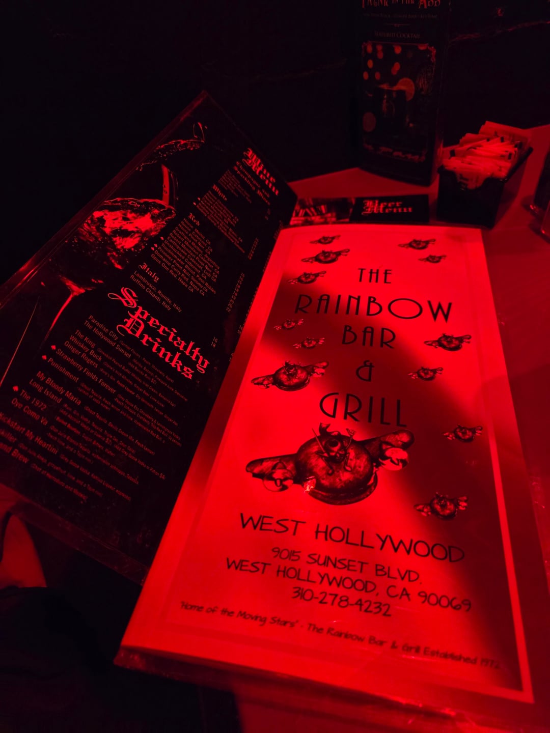 As a person who used to spend a lot of time at the Rainbow in the 90s, I am glad to see that it is still red, and that the food is still good. Ironically, back in the day, I had breakfast seated next to the bass player from Faster Pussycat, although that was at Duke’s a few doors down.